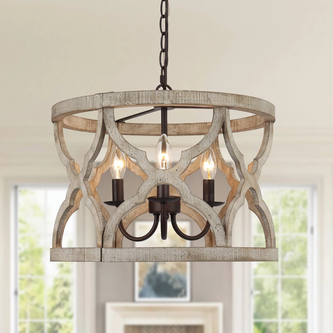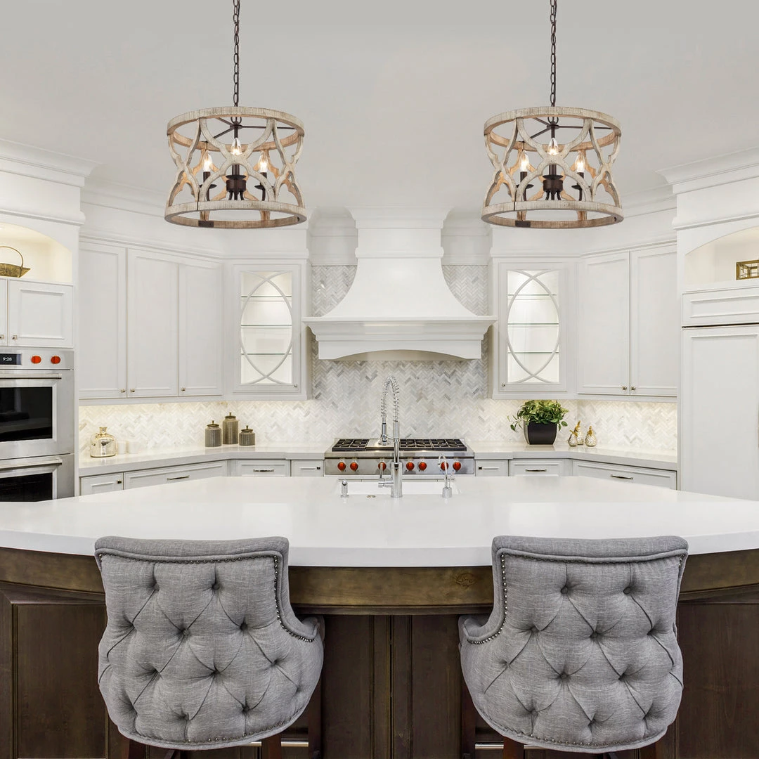 This rustic farmhouse ceiling light will catch your eyes easily. Featuring a distressed wood frame with grey stains, it brings a touch of the countryside to your space. If you would like to mix with your warm tone style, this will be a perfect addition to upgrade your space to the next level. Ideal to be hung over your kitchen island, dining room, or living room.