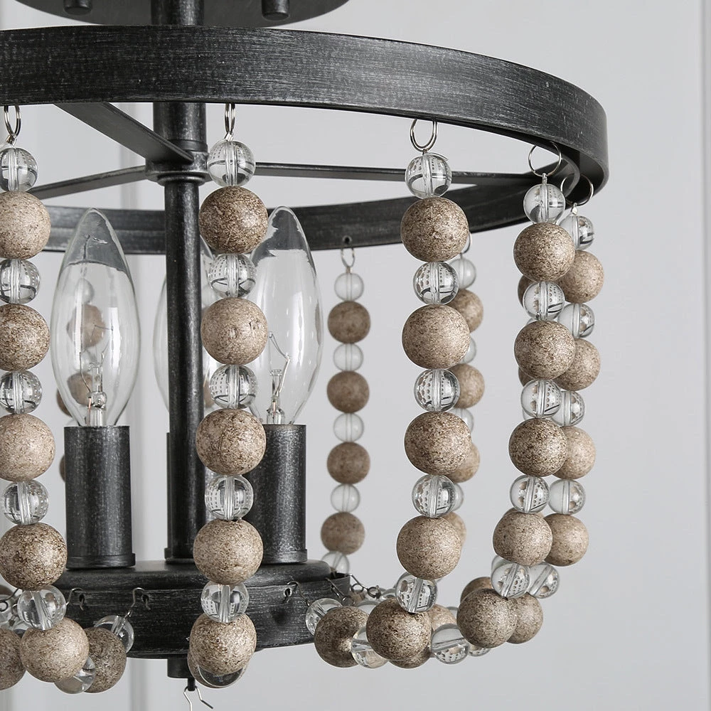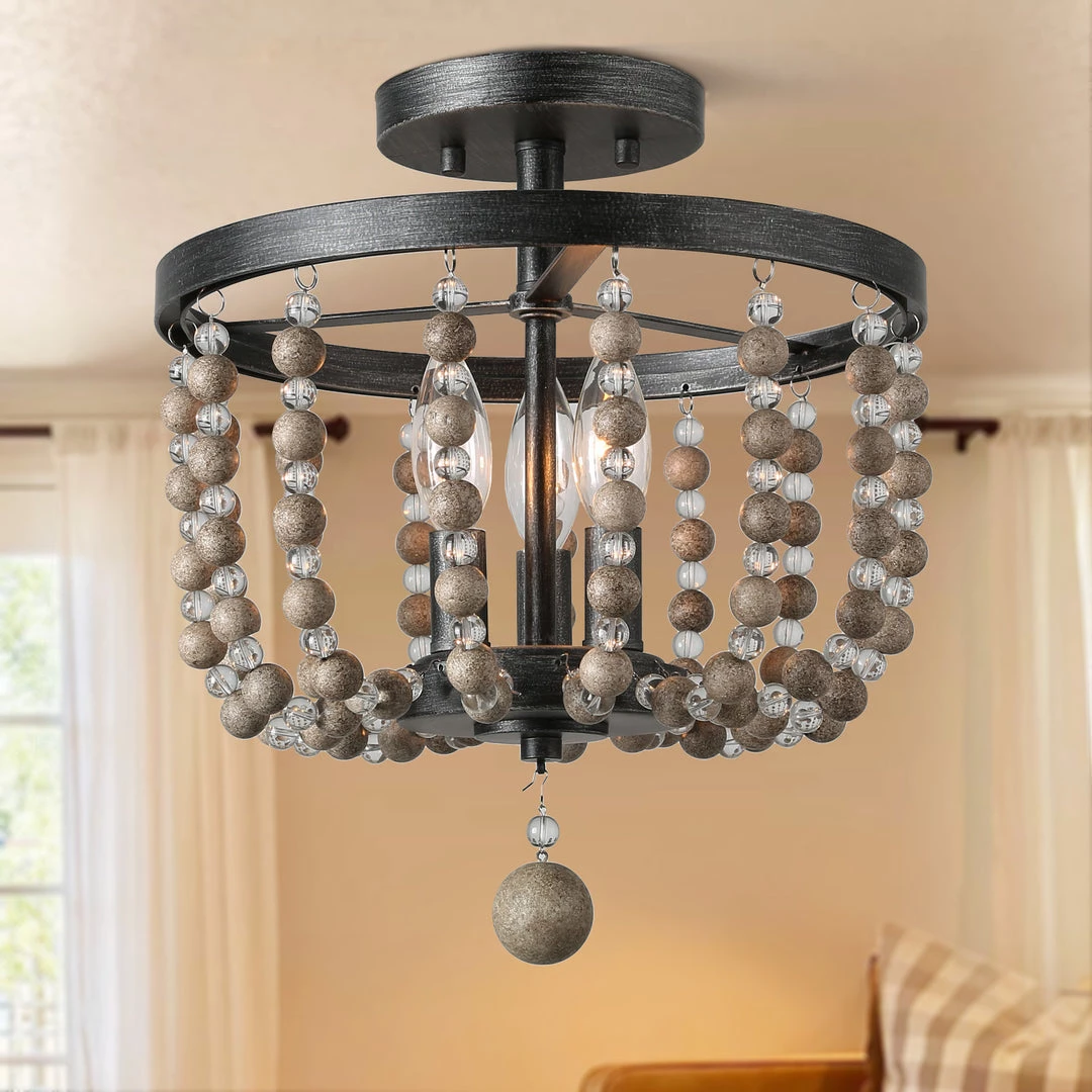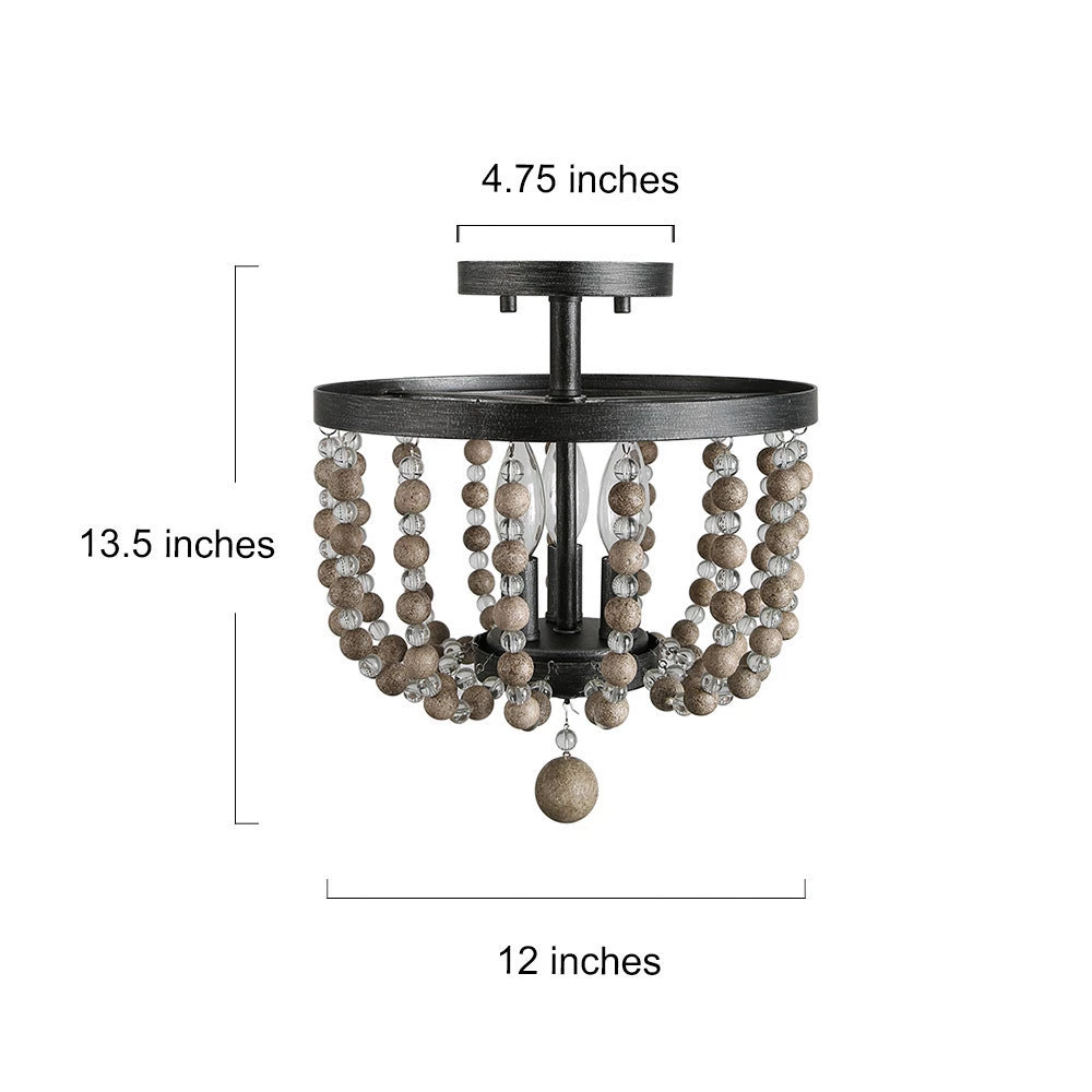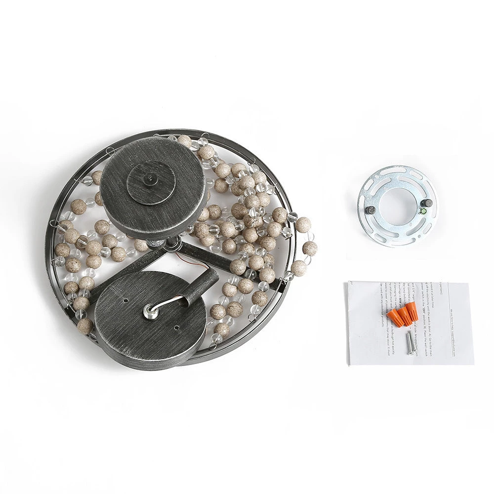 This light fixture is a prominent display of round distressed wooden beads & crystal beads. The bead rings are hung on the black silver-plated iron round frame to add bohemian charm. Without a doubt, this lighting fixture is designed to impress your guests in any room: kitchen, bedroom, or living room.