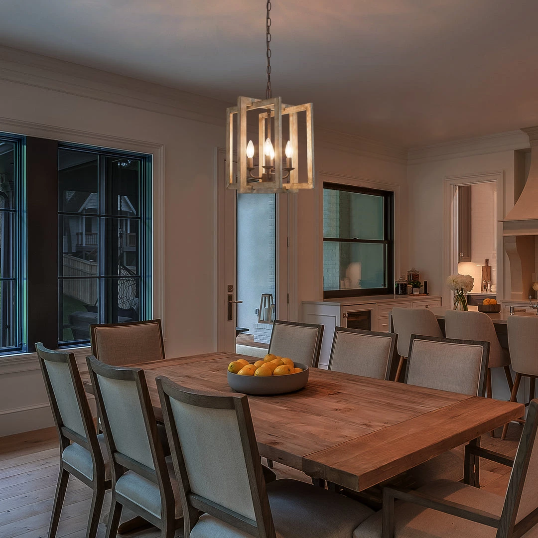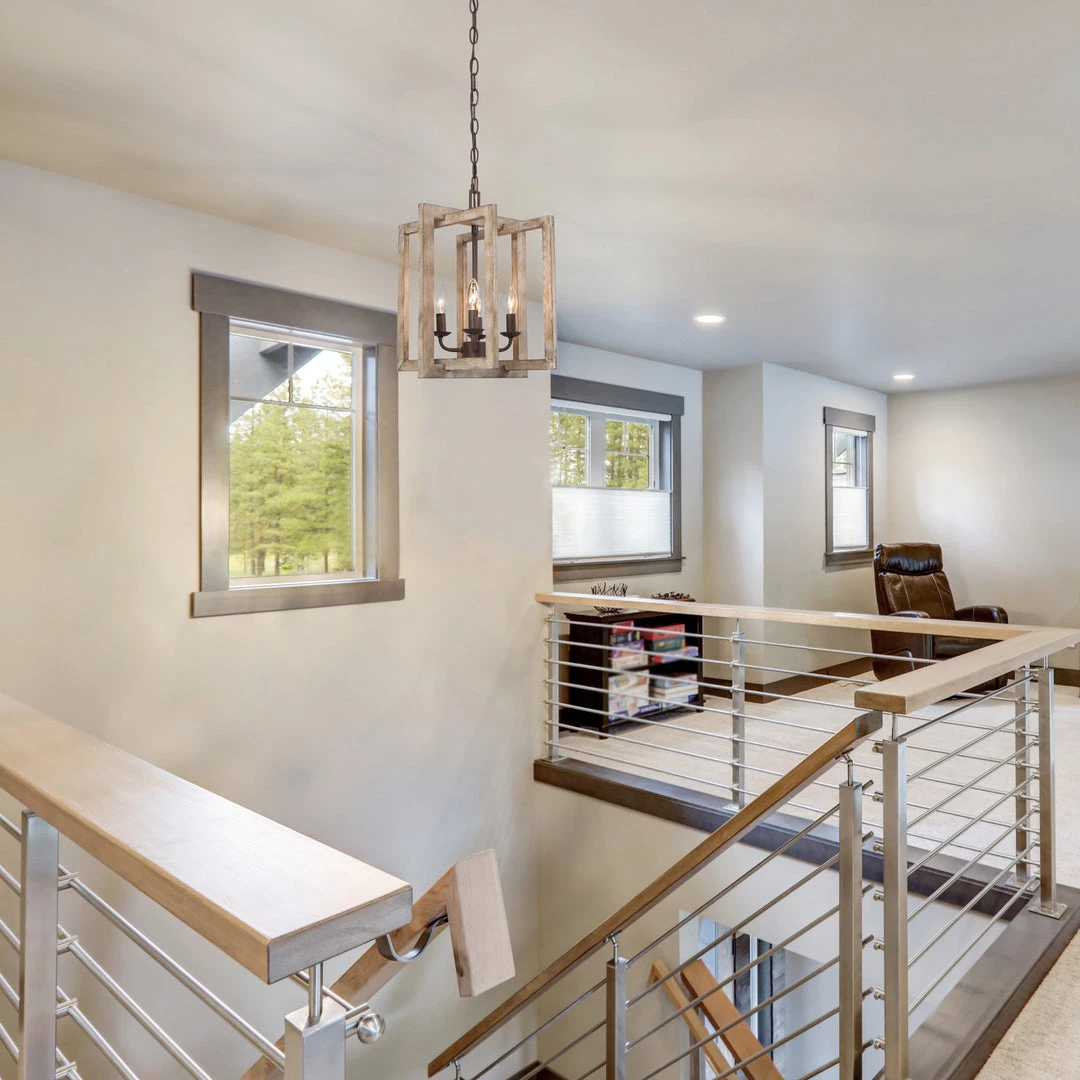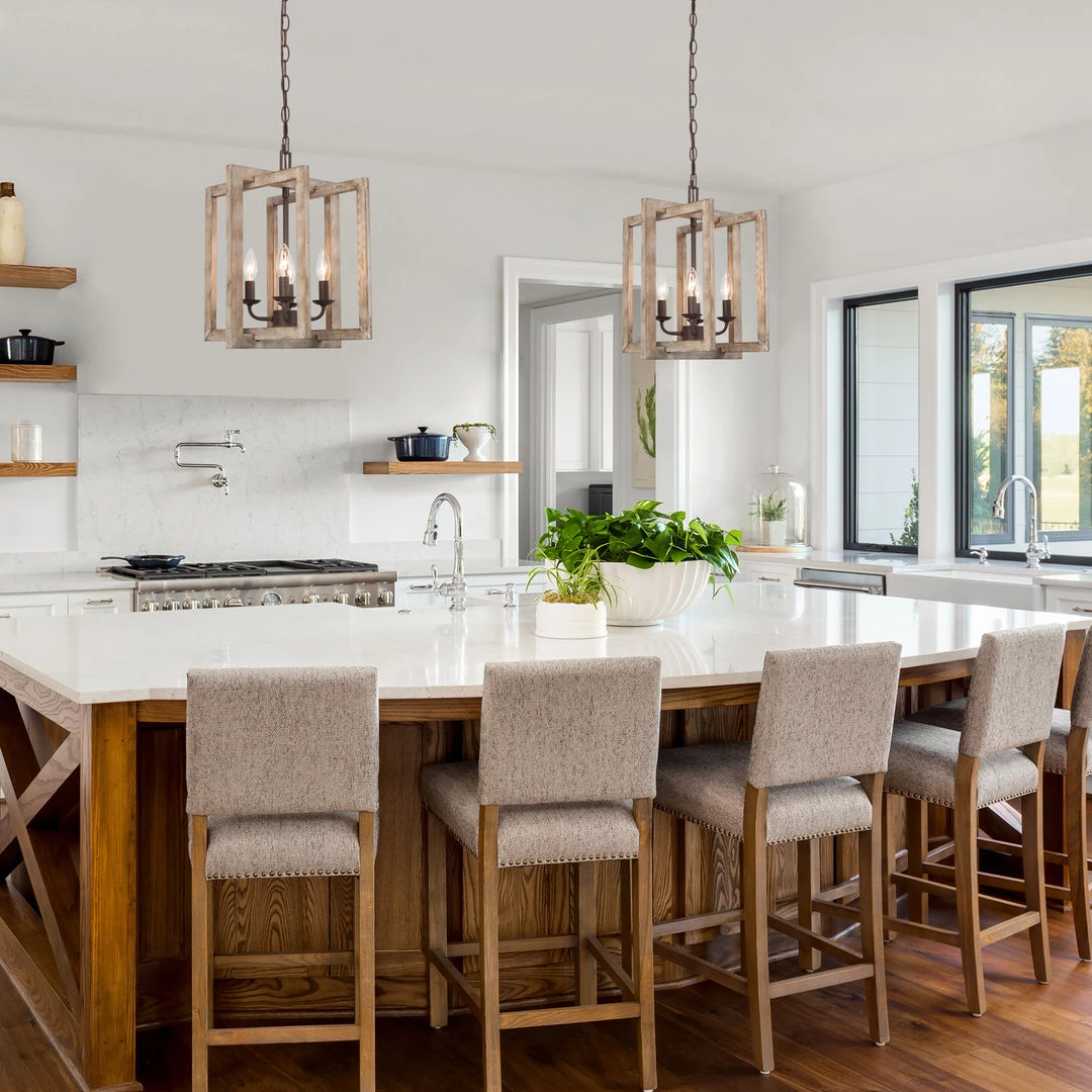 This modern farmhouse yet classic fixture boasts rustic, distressed finishes and is sure to add an understated elegant look to any room. Versatile and chic, this fixture is a great choice for cottage, farmhouse, or modern decor. The open-frame design allows ample and unhindered light for your kitchen island area, living room, or bedroom.