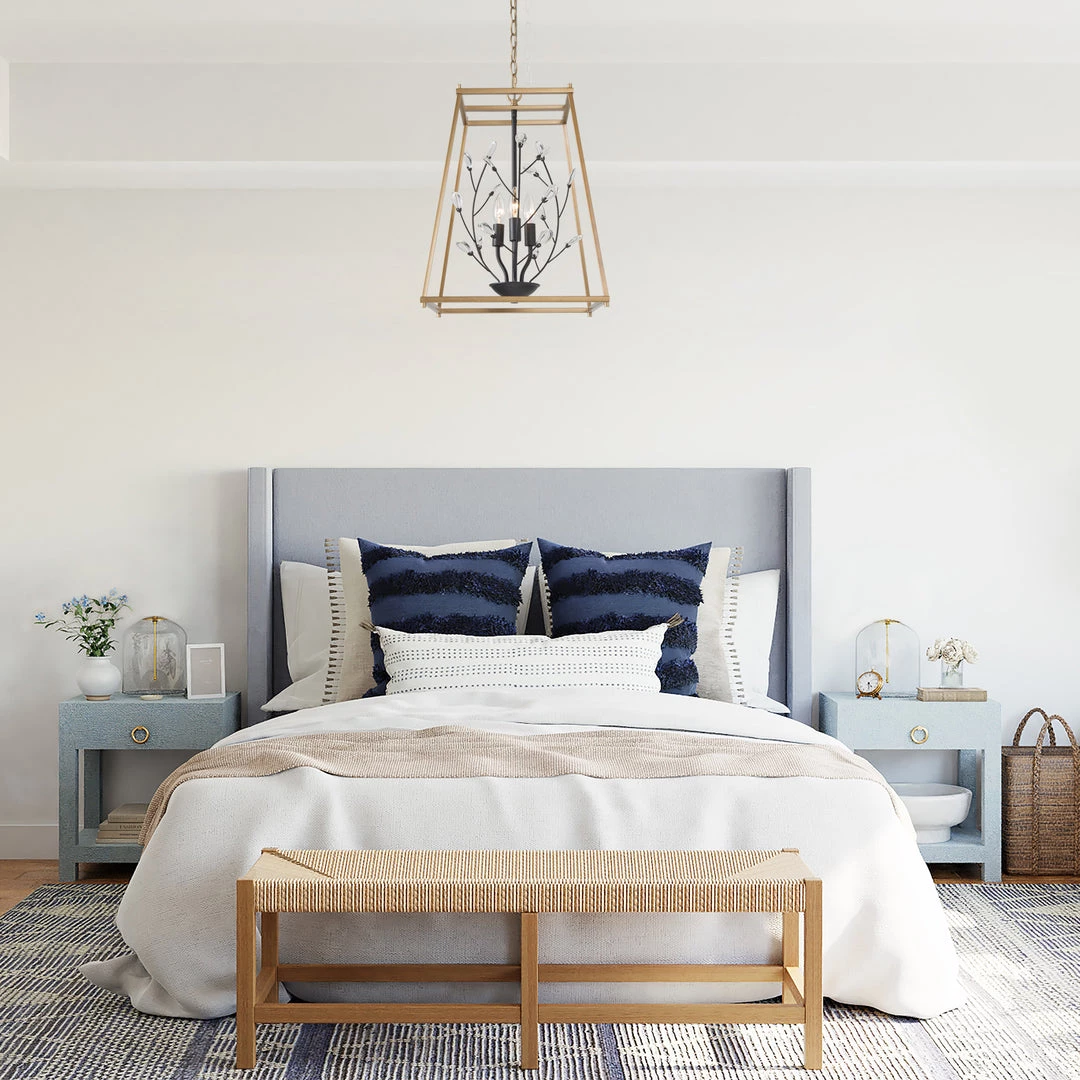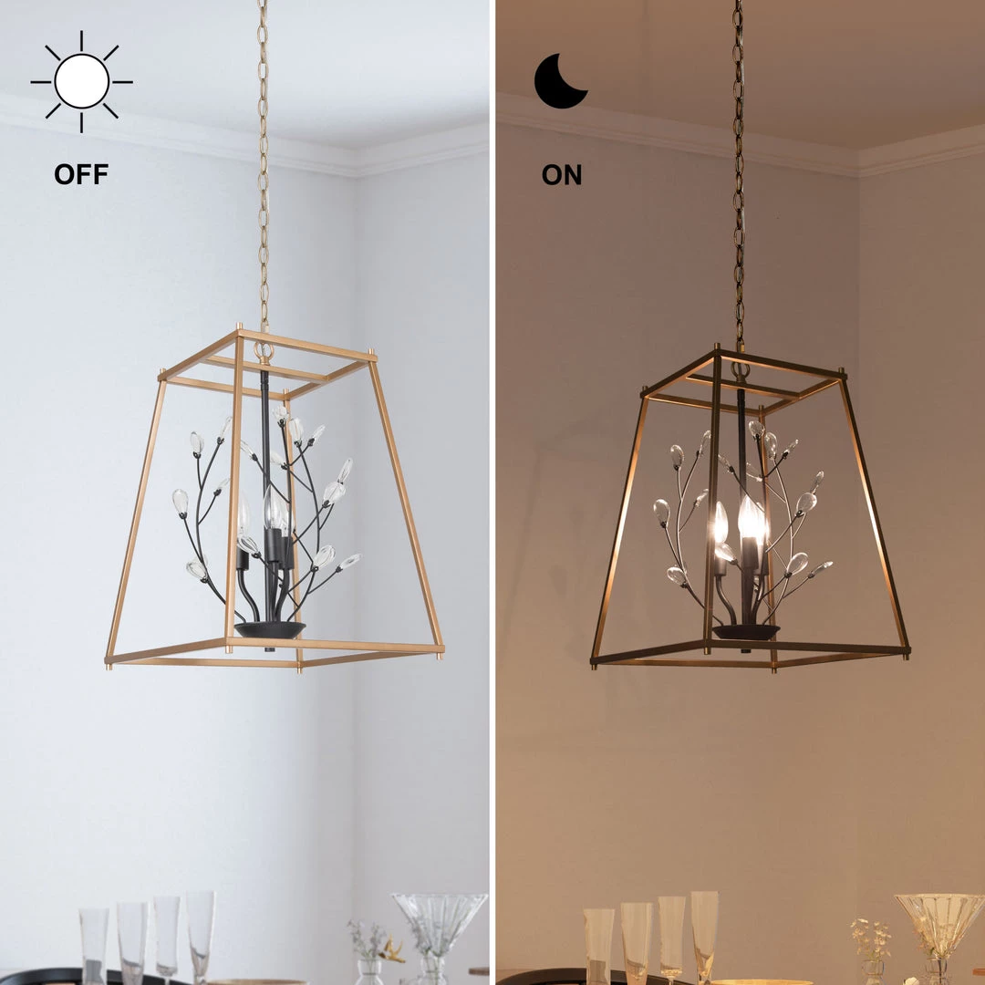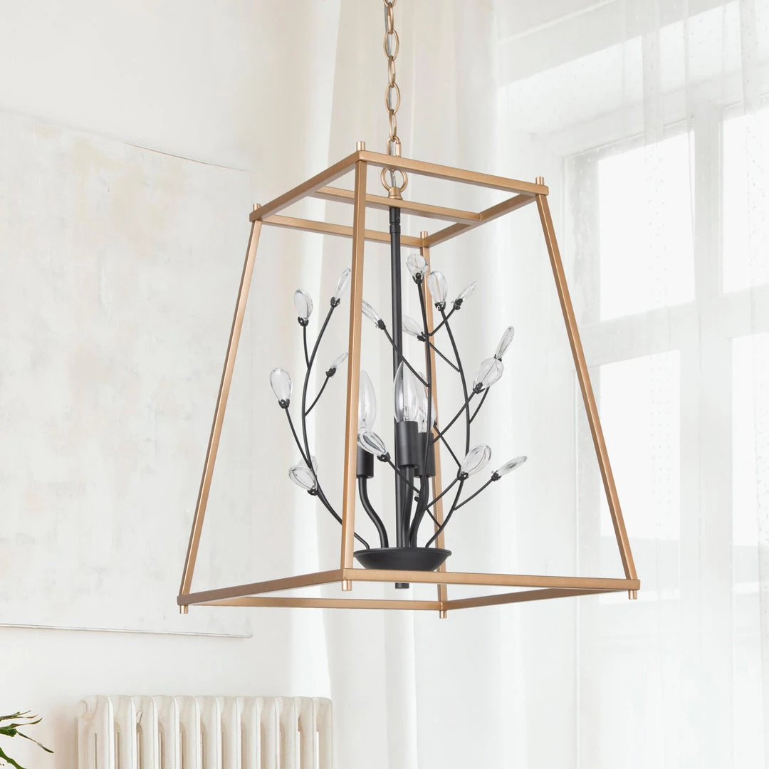 Exquisite and functional, this delicate modern chandelier features a hand-crafted stand decorated with crystals. As a captivating assembly of mixed metals and crystals, this light fixture adds immediate charm, softness and chicness to your spaces.