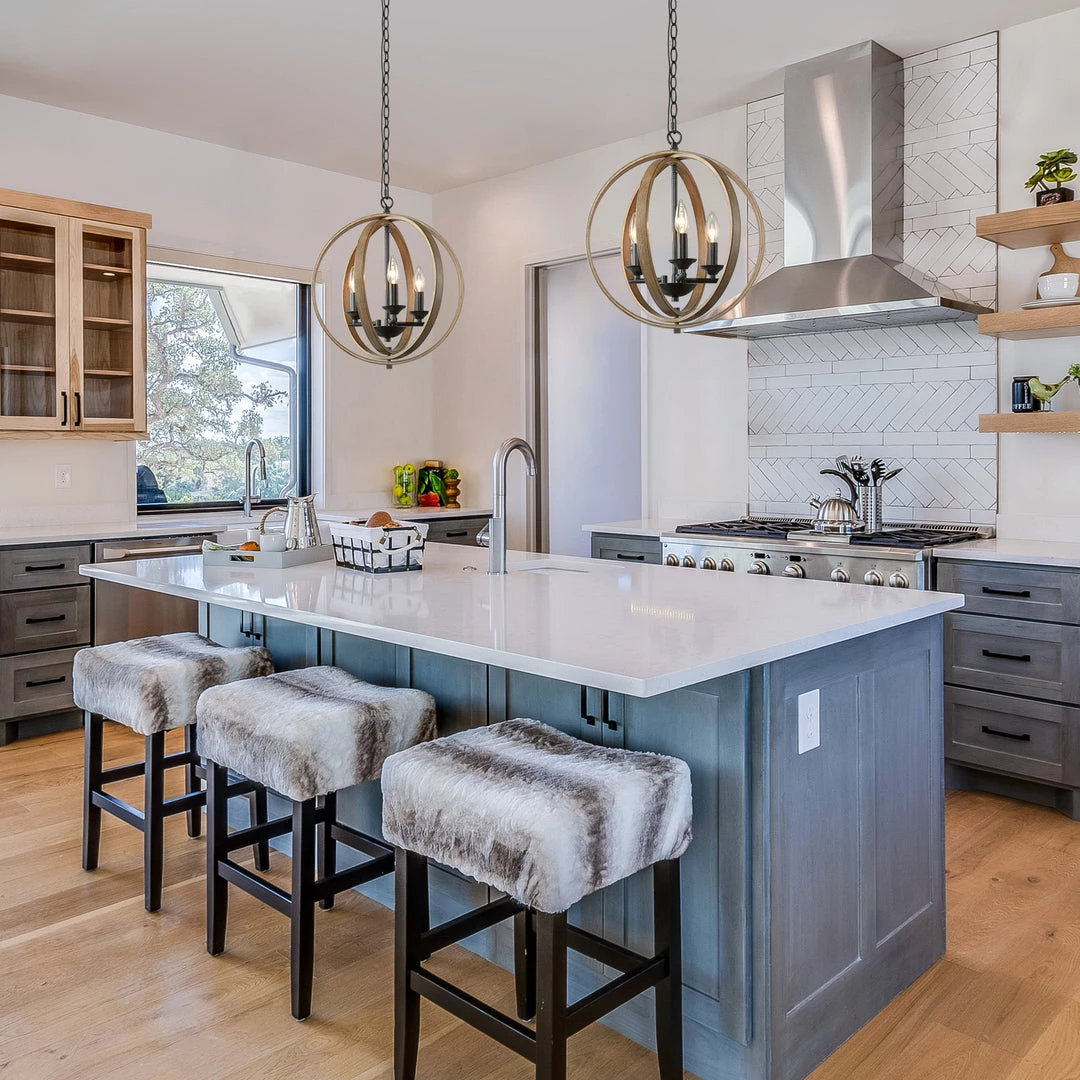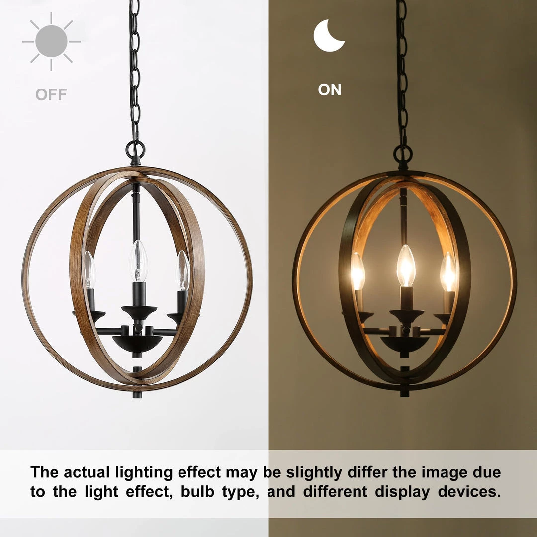 The orb cage-style design of this pendant is given a rustic makeover with the warmth of the natural wood construction. The light arms are finished in black metalwork well in complementing this rustic design. Perfect to be hung over your kitchen island, and in your bedroom and foyer.