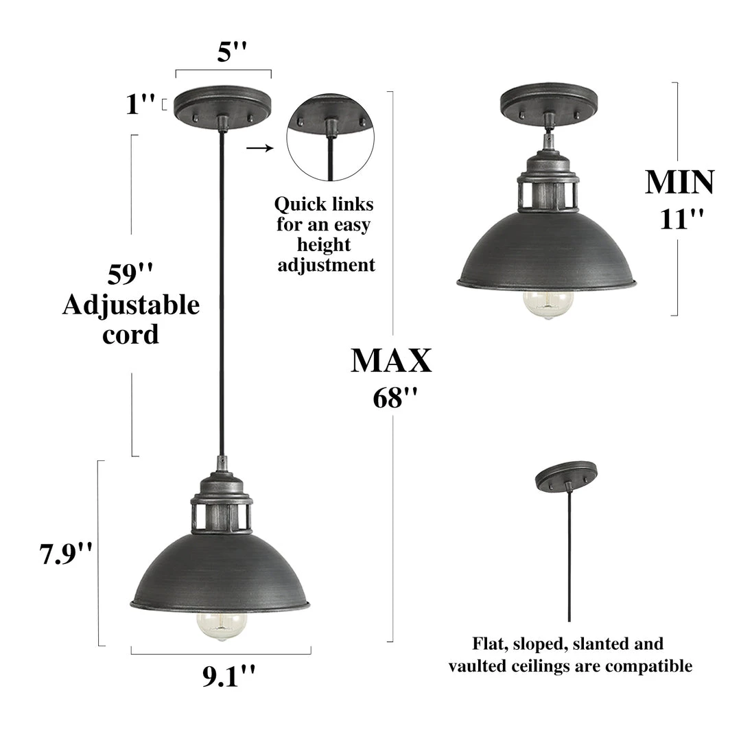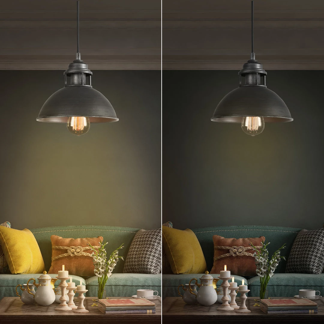 With an elegant black metallic shade hand-crafted to the highest standard, and the meticulously-brushed vintage veneer, this industrial dome pendant light exudes a full industrial vibe that can add a touch of toughness and some weight to your space.