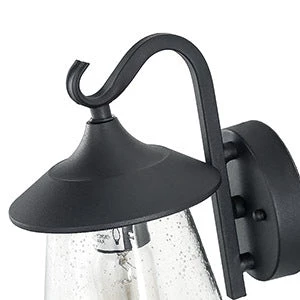 Shallow bowl roof, bent arm, and clear glass bring a refined arts and crafts element to its iron construction. The seeded outer glass shade adds natural and rustic simplicity. This fixture emits a soft glow that is easy on the eyes with a weather-resistant finish for use in a variety of outdoor environments.