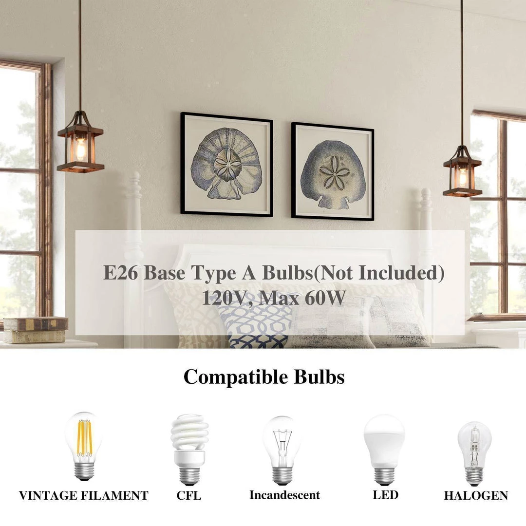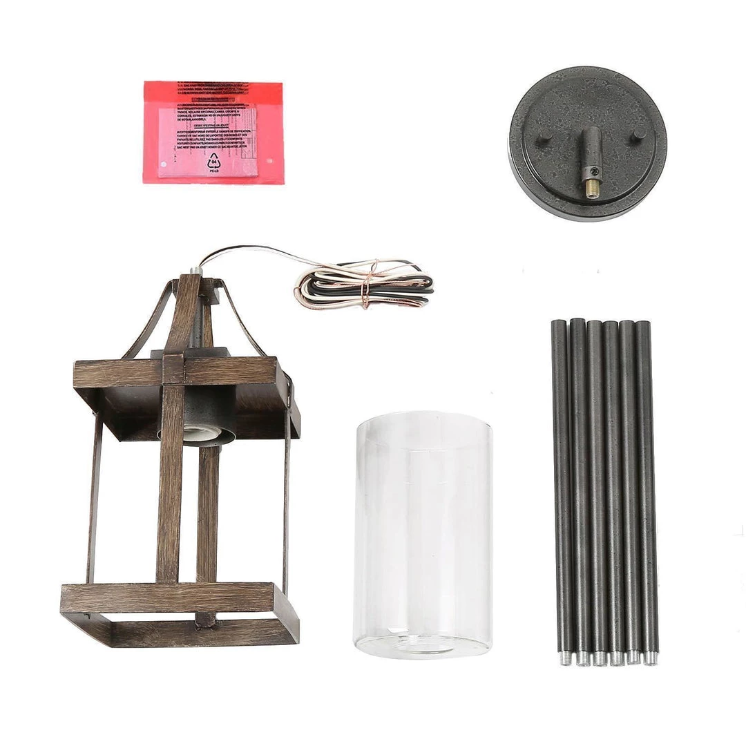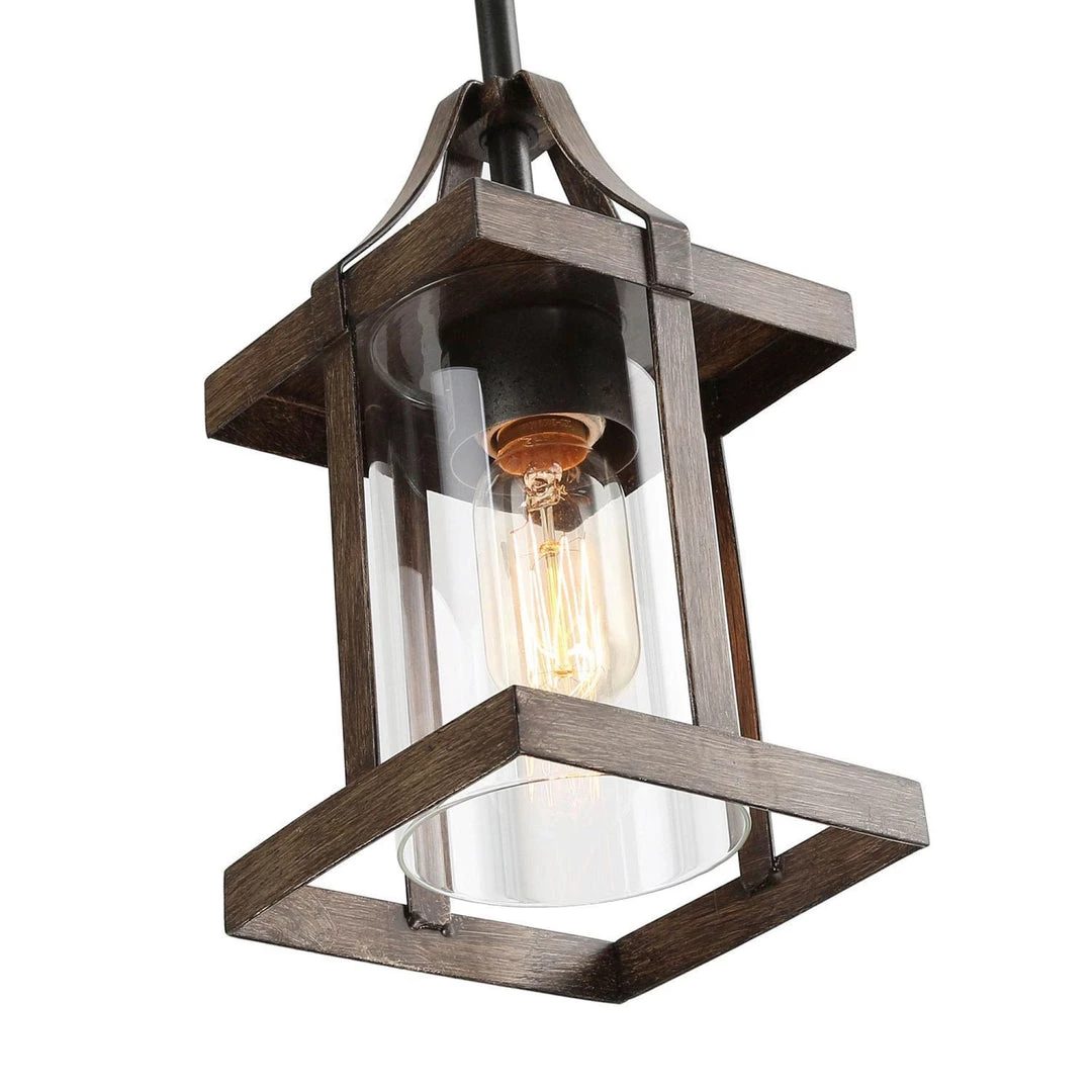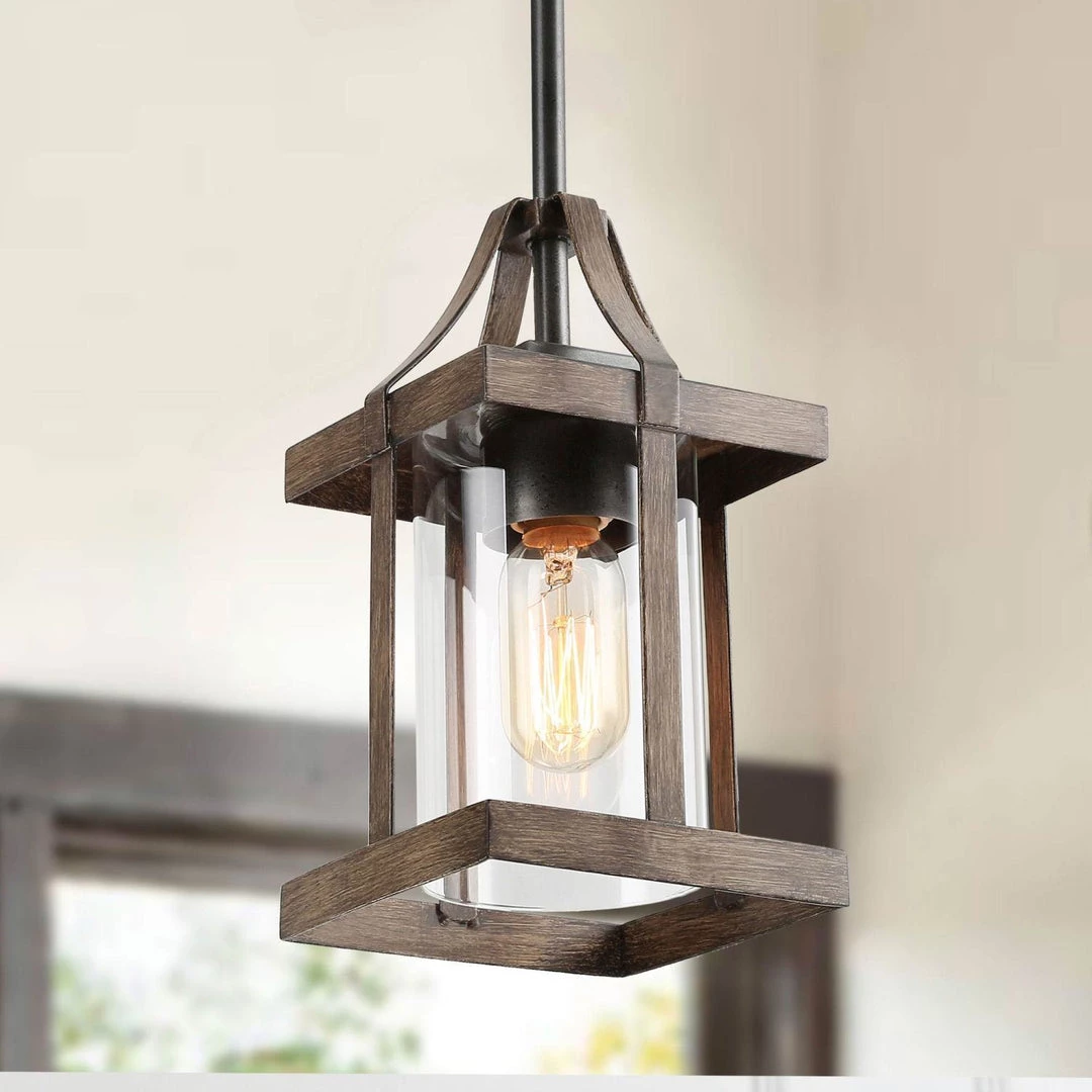 A combination of vintage and industrial style, the unique appearance makes it the first choice for decoration and remolding. Farmhouse & modern aesthetics: featuring cylindrical clear glass shade, faux-wood finished rectangular lantern-style frame, slender down rods, and a round sloped-ceiling-compatible canopy, this pendant lights add a chic touch to your space.