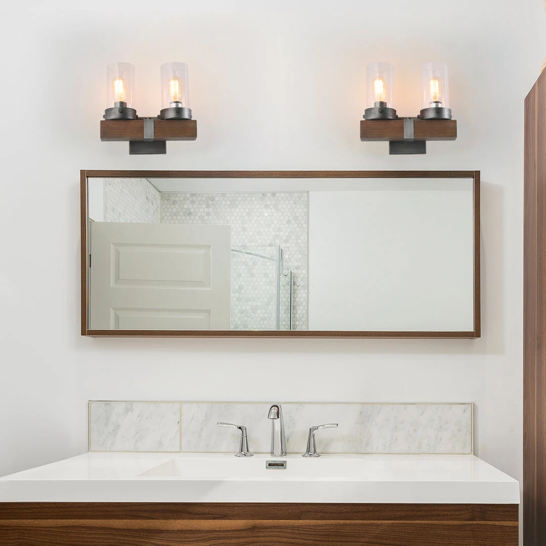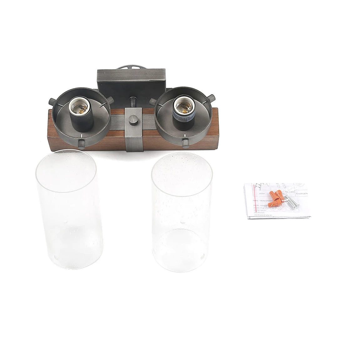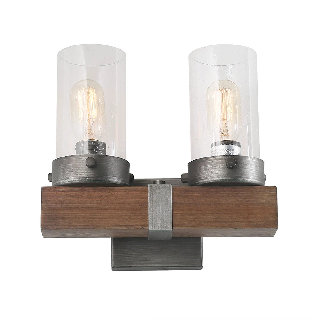 The cylindrical bubbled glass softly diffuses the light and cast a warm upwards/downwards glow.Simple chic yet rustic wall lighting for bathroom, especially designed to illuminate the heart of your vanity, bathroom or farmhouse styled places. Crafted of real wood and hand-applied brushed antique silver finish, this vanity lighting features a rectangular frame for a vintage appearance.