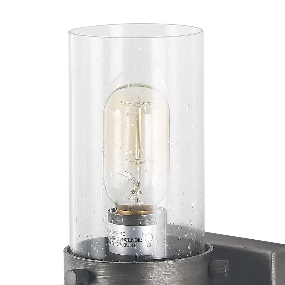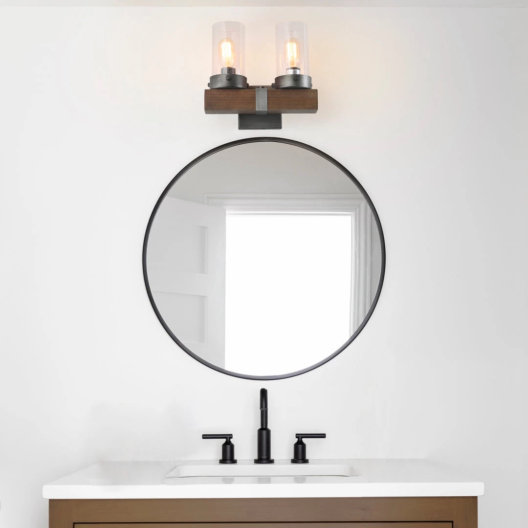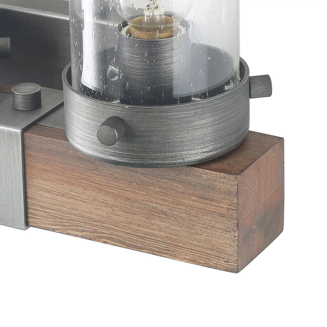 The cylindrical bubbled glass softly diffuses the light and cast a warm upwards/downwards glow.Simple chic yet rustic wall lighting for bathroom, especially designed to illuminate the heart of your vanity, bathroom or farmhouse styled places. Crafted of real wood and hand-applied brushed antique silver finish, this vanity lighting features a rectangular frame for a vintage appearance.