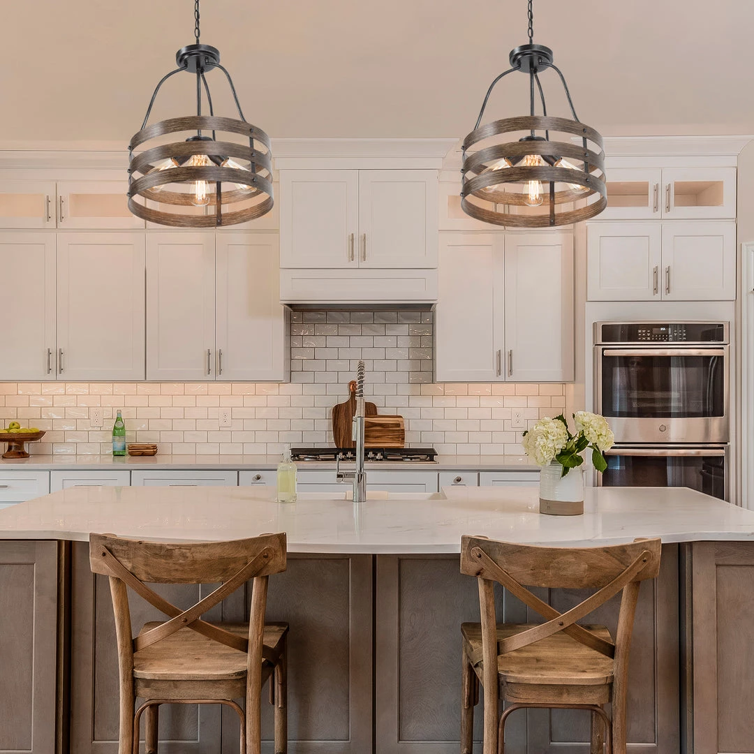 Inspired by an antiques and vintage appeal, this lantern style farmhouse pendant will fuse your spaces with instant rustic charm. Small in size, this fixture is best suited for narrow spaces or to be hung in multiples over a kitchen island or lined up in your foyer. The rustic veneer of the faux wood panels are partnered with the elegantly curved frame for the great combination of cuteness and farmhouse charm.