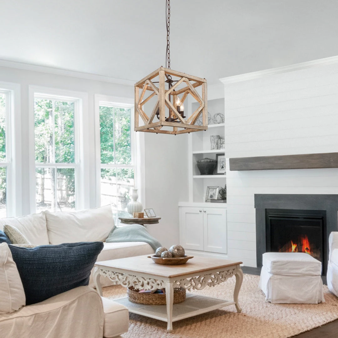 The vintage appeal stems from this White French Country Cube Chandelier. With a rustic antique design, this chandelier adds a story to your home with its distressed finish and classic figure. The minimalist design and rugged finish allow this fixture to blend with a wide range of decors including industrial, rustic, modern, and classic.