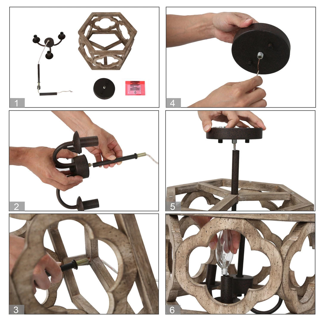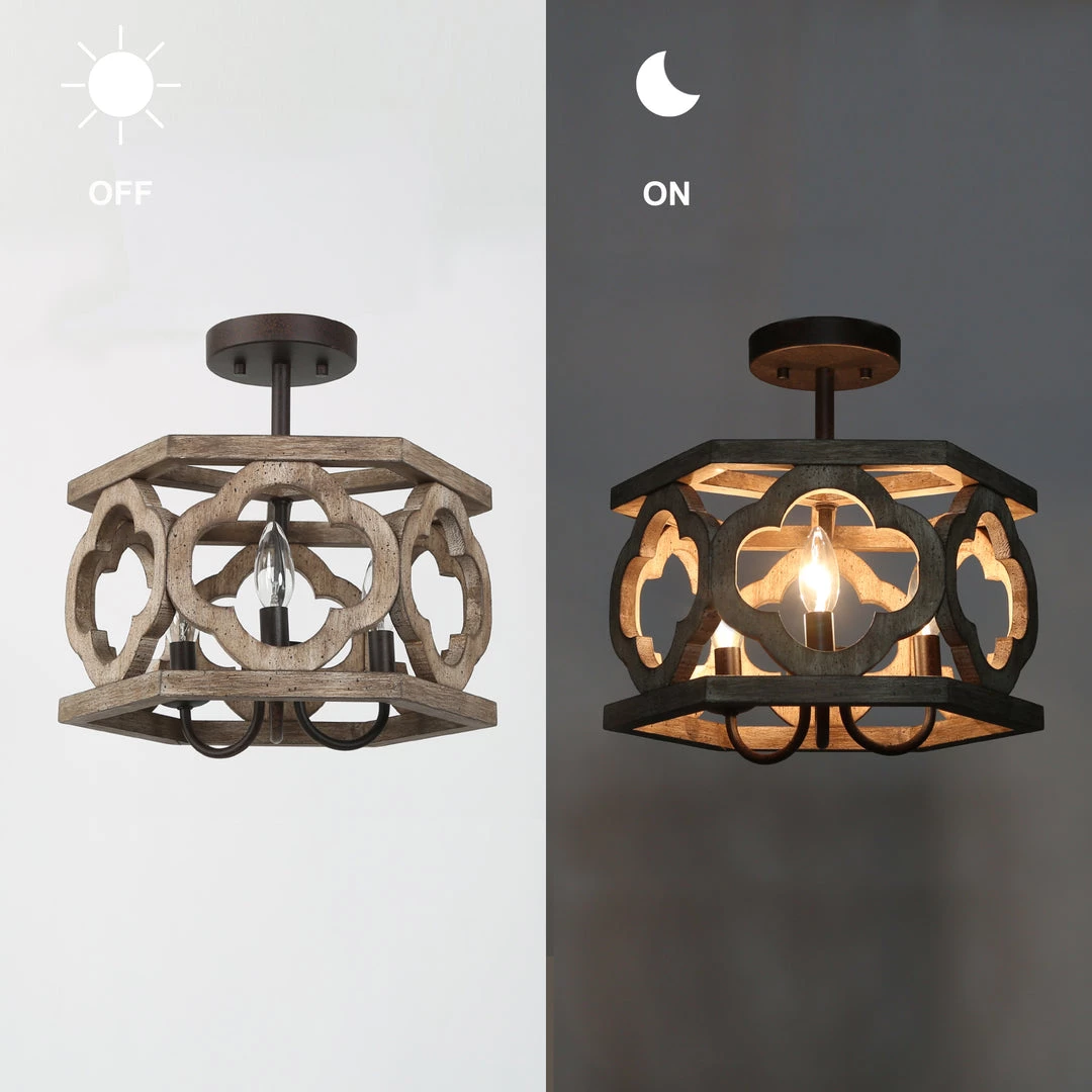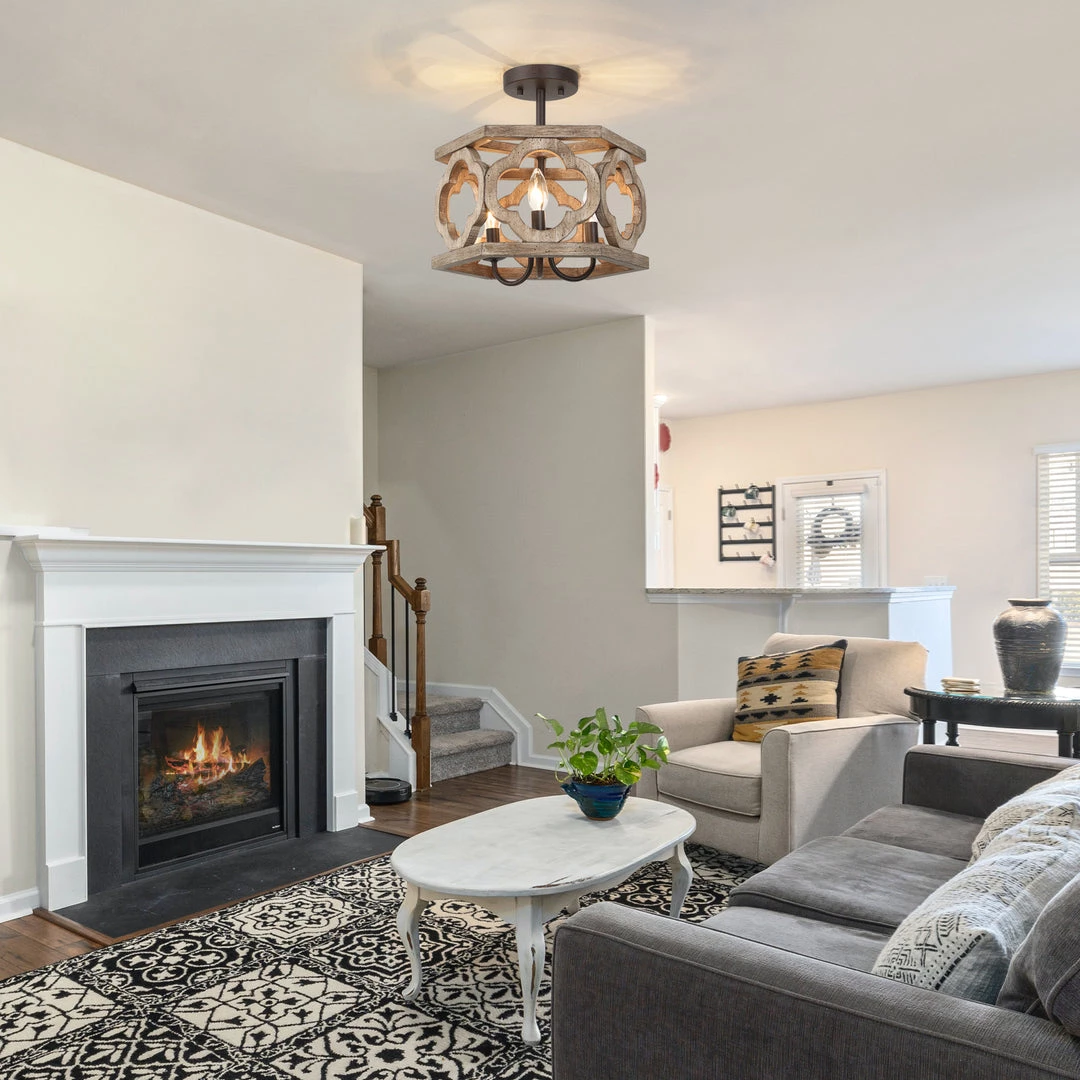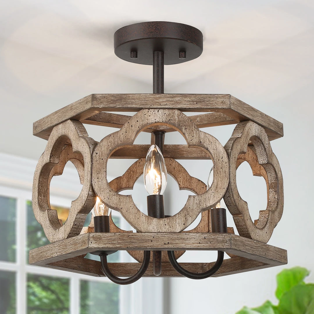 This modern farmhouse fixture has an exotic beauty with the hand-carved patterns and the rustic-finished veneer. Clearly a winner in versatility and simplicity, this French Country Drum Chandelier portrays a delicate lace design that adds immediate chicness and elegance to your kitchen, living room, or bedroom.