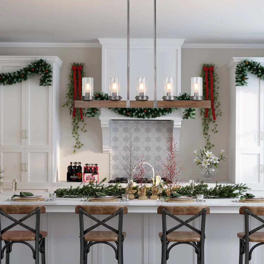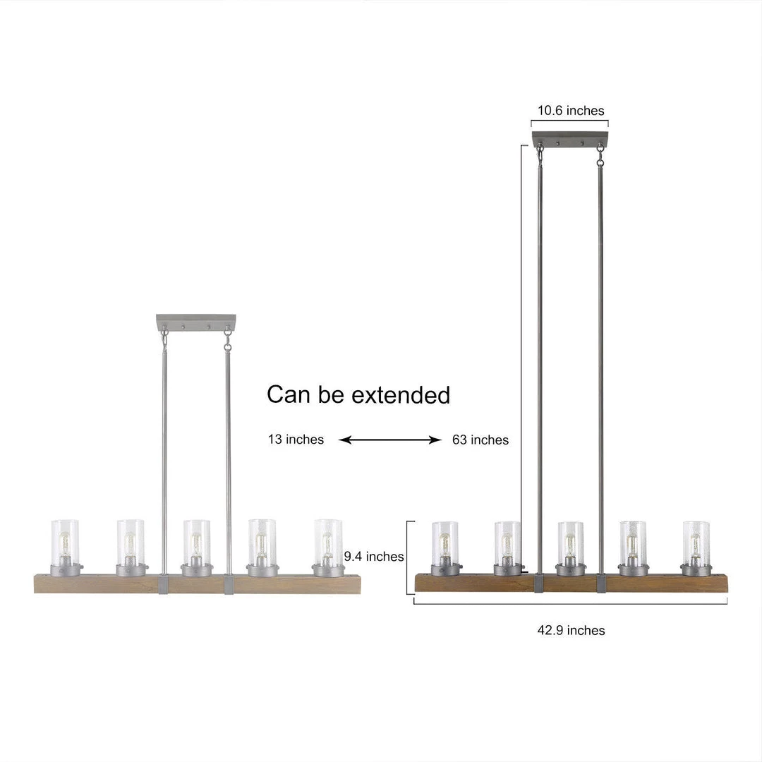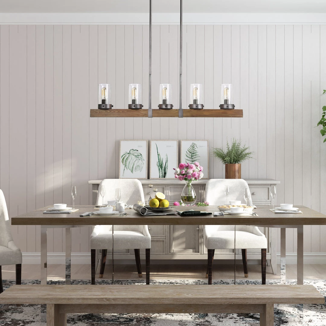 It updates a plain kitchen into a rustic farmhouse-inspired space with this five-light linear chandelier. An alluring addition that brings on-trend style and illumination to your home. Enhance the appearance of your kitchen island by installing this Kitchen Island?? chandelier.