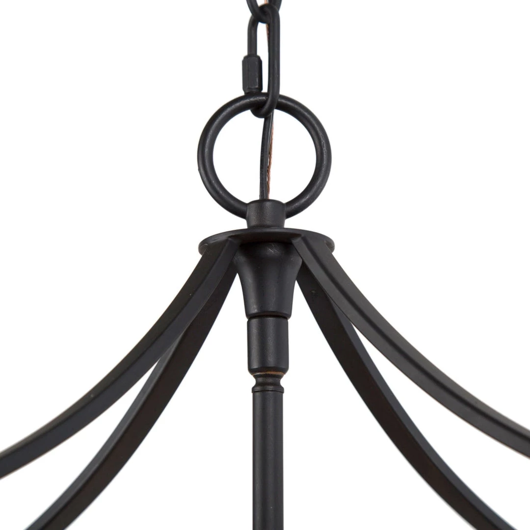Casually arranged metal straps in industrial-inspired bronze, combined with the sleek polished black frame to form this modern cage chandelier. With the daring sense of fashion, this fixture adds immediate styles and personalities beyond measure to your kitchen, living room or foyer.