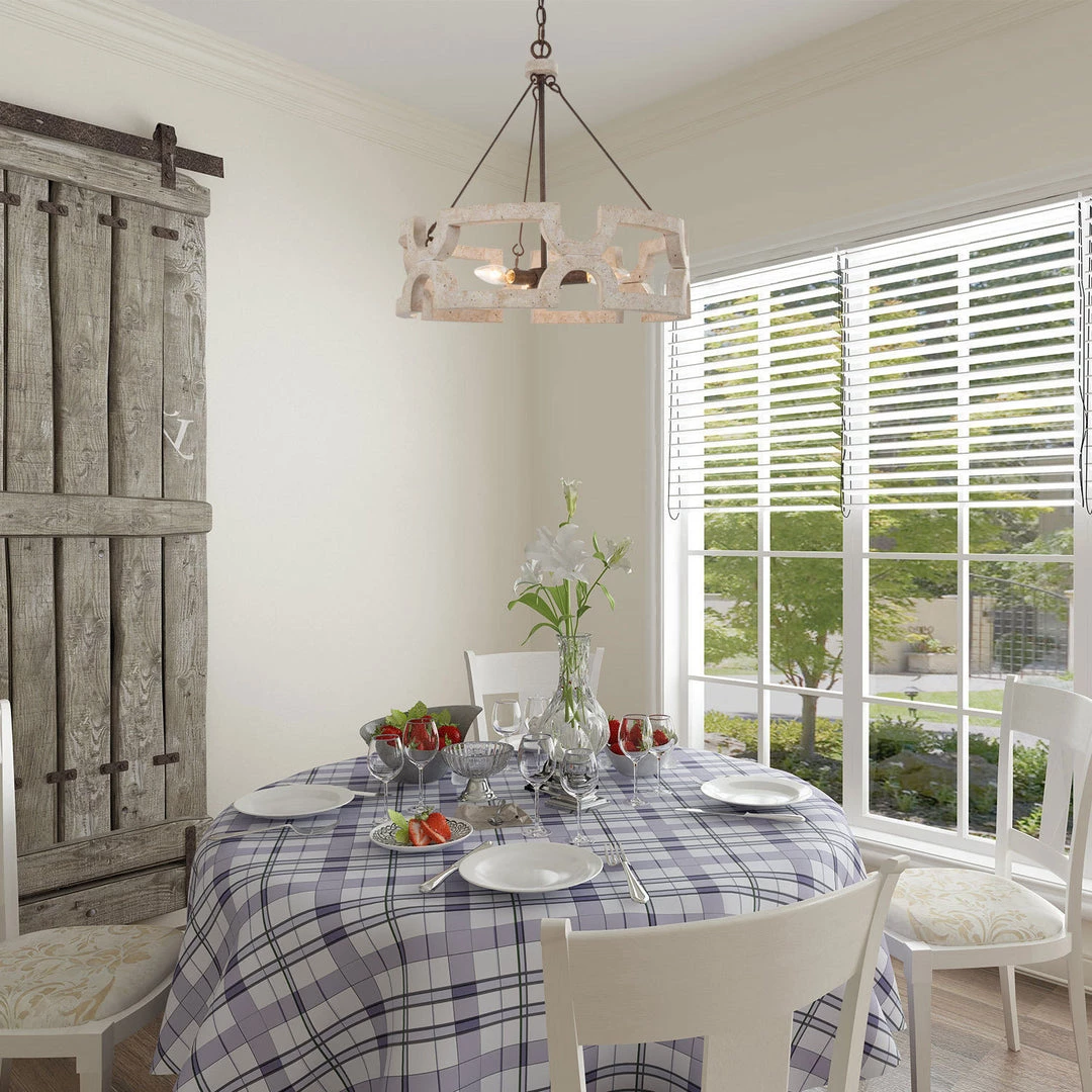 The LNC Rustic Wooden Drum Chandelier is stunning! It adds a warm, rustic charm to my dining room. The quality is excellent, and the installation was straightforward. Highly recommend!