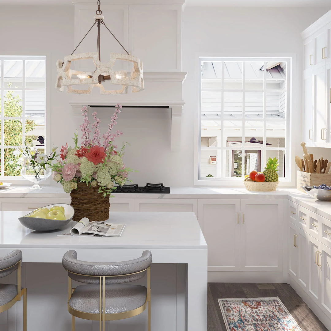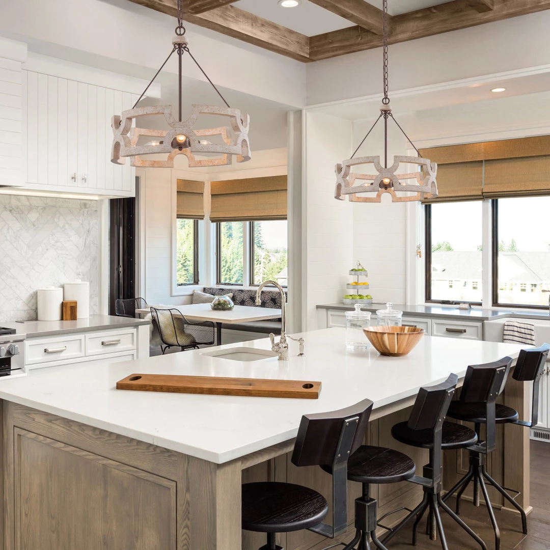 I’m really impressed with this chandelier. The wooden finish is beautiful, and it fits perfectly with my farmhouse decor. The lights are bright but not harsh. Great purchase!