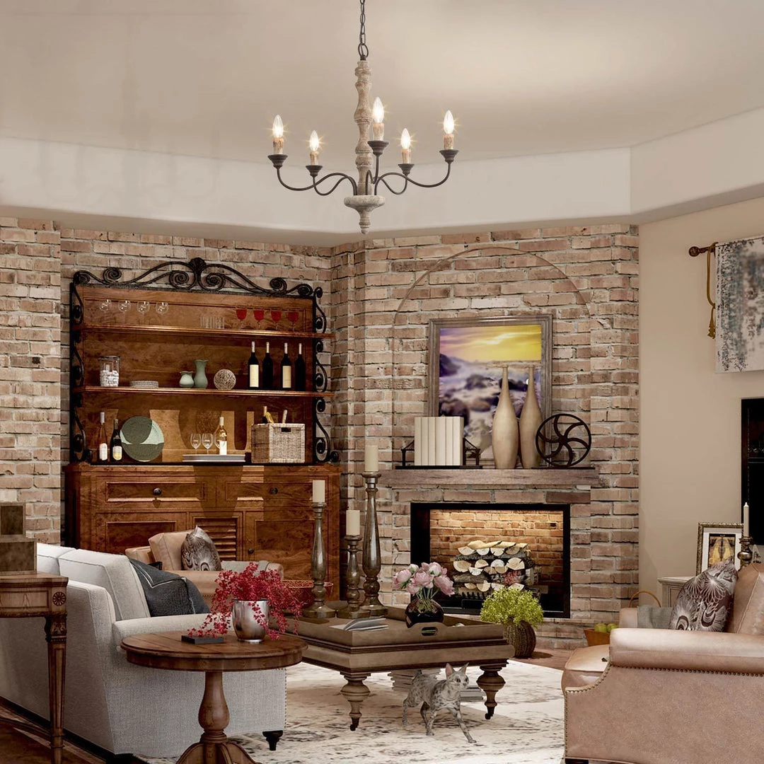 Made from distressed wood, this rust-colored chandelier with its vintage chain and canopy will surely add luxury to your place. High-end, luxurious, and elegant design enhances the French country style you’re looking for and offers you the desired ambiance. Hand Crafted with dozens of precise procedures, this chandelier will not only light up your home but serve as a stunning masterpiece.Â