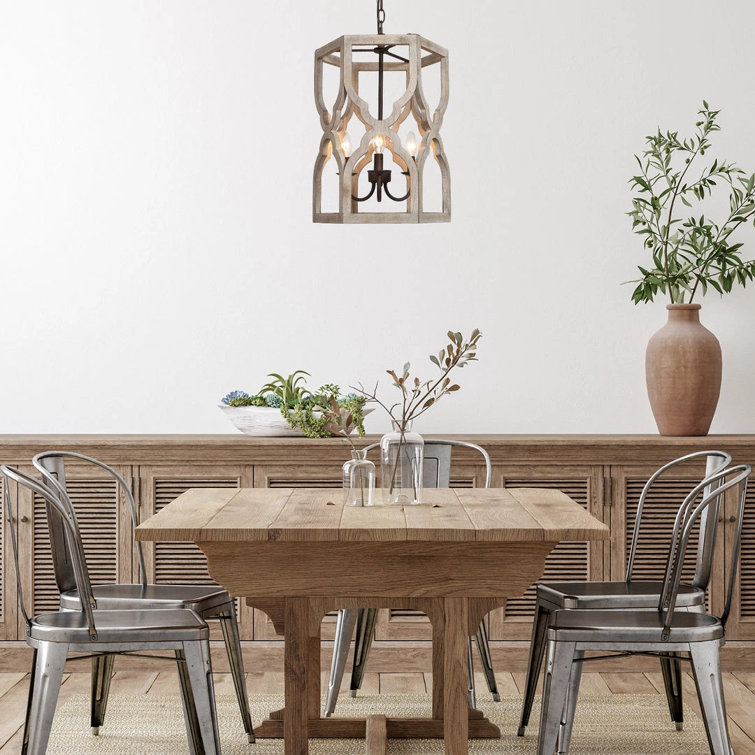 Crafted out of solid wood, this farmhouse pendant has a distressed finish that adds an instant rustic aura to your home. Designed and crafted by our experienced artisan, this White French Country Lantern Chandelier is a striking way to bring trendy farmhouse style with a timeless appeal into your home.
