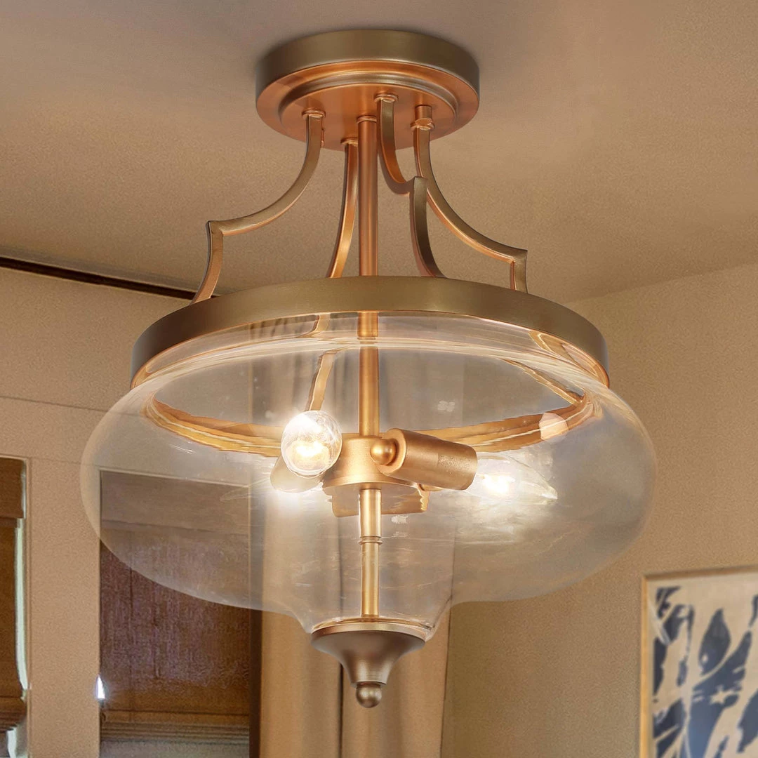 Bring bold modern style to your space with this modern gold ceiling light. The texture and colors will add instant charm above a kitchen island, a table, or a hallway. The crisp clear glass is the perfect complement to the vintage gold veneer. The clean and elegant design adds a crisp aura and gives the space a temporary edge.