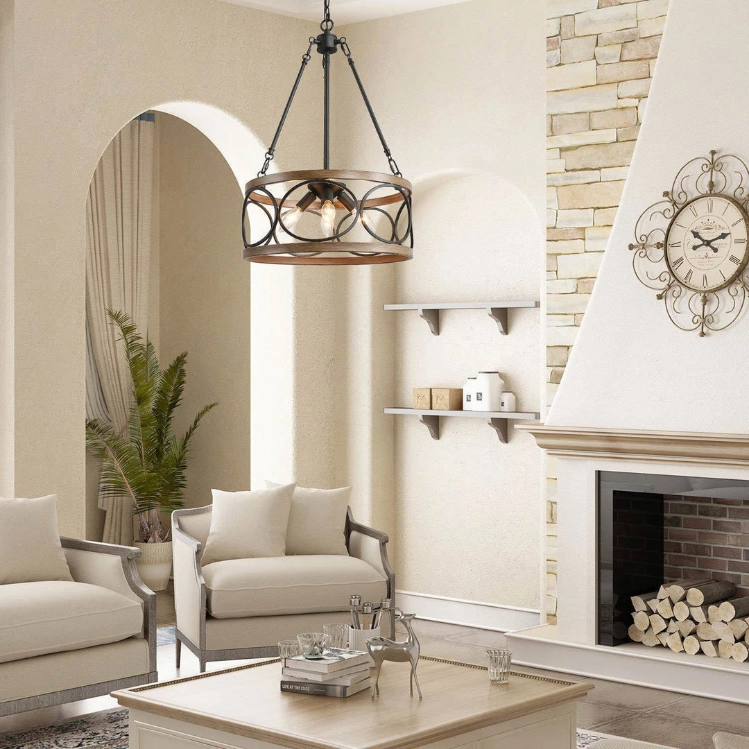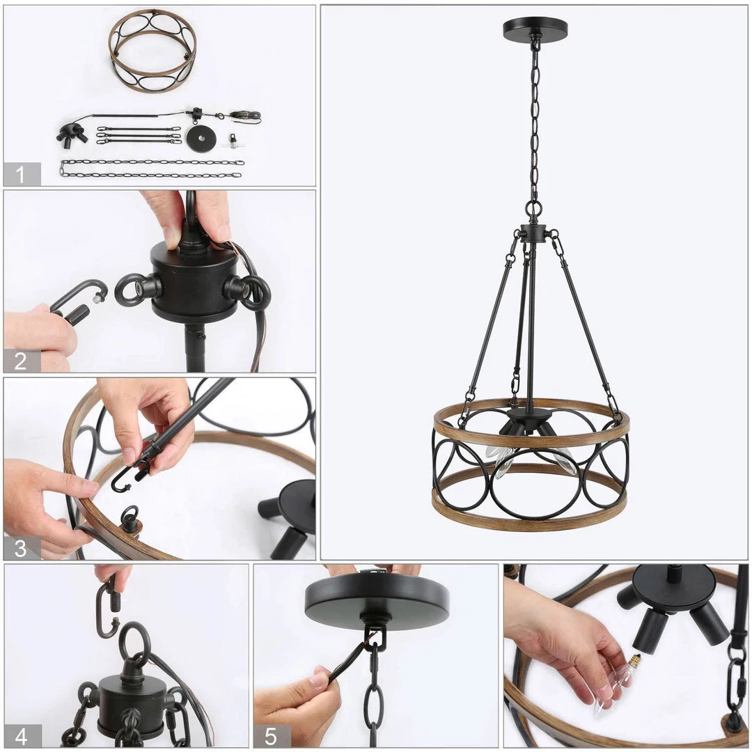 Two-tone black and wood grain finish give this farmhouse chandelier a modern yet farmhouse appeal. Its adaptable design offers elegance and contemporary touches to any space like dining room, bedroom, living room, and entryway.