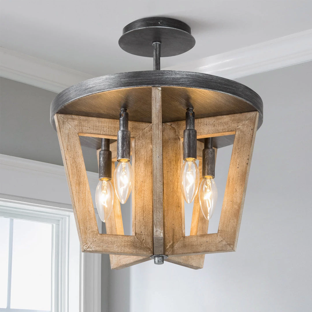 Antique metal and wooden create the great combination of modernity and rustic charm. This is a ceiling light that earns the center space of any room. This ceiling light is hand-crafted by our in-house artisans. With great versatility, this lighting piece can be perfectly meshed in any decor setting imaginable.