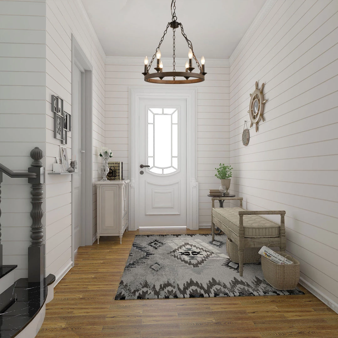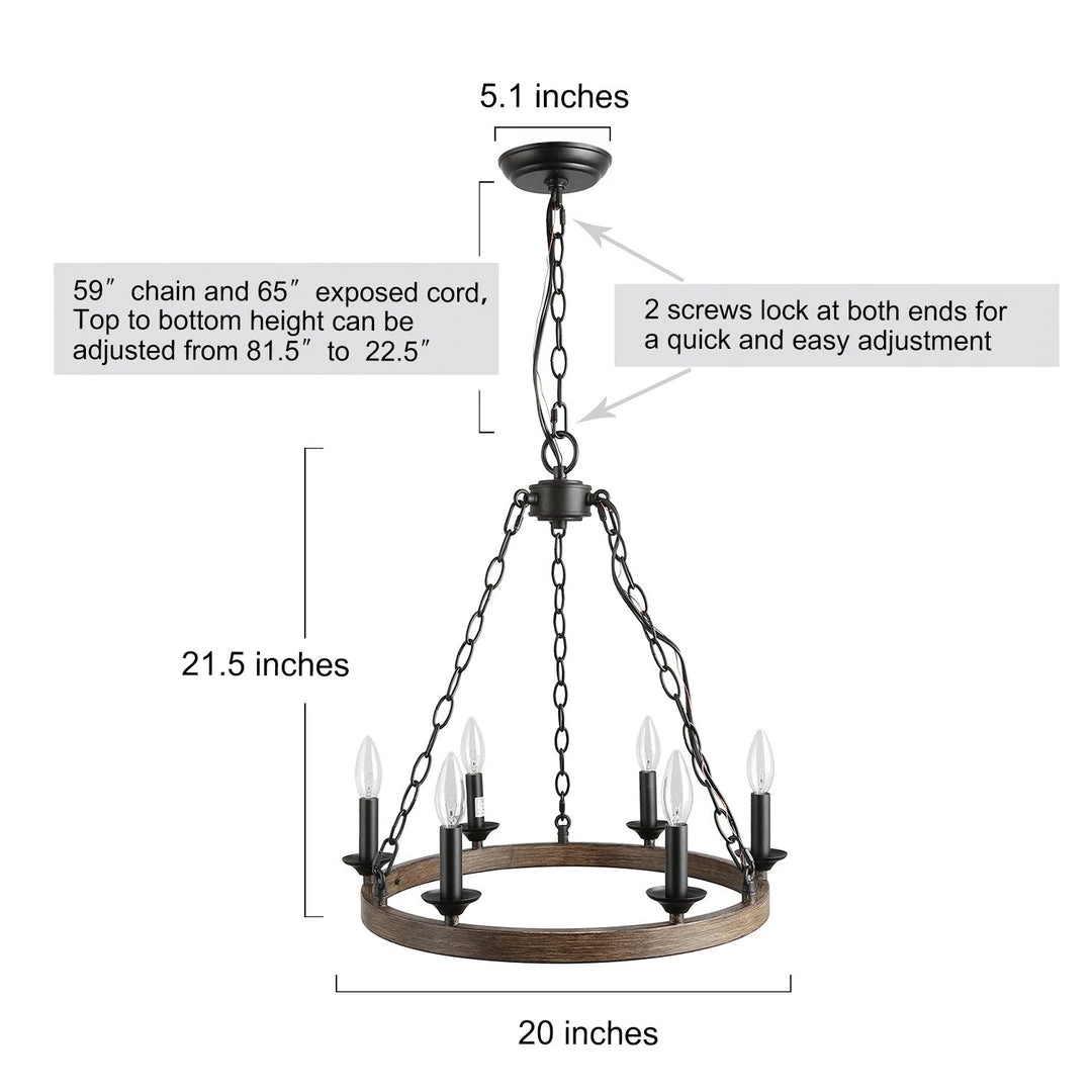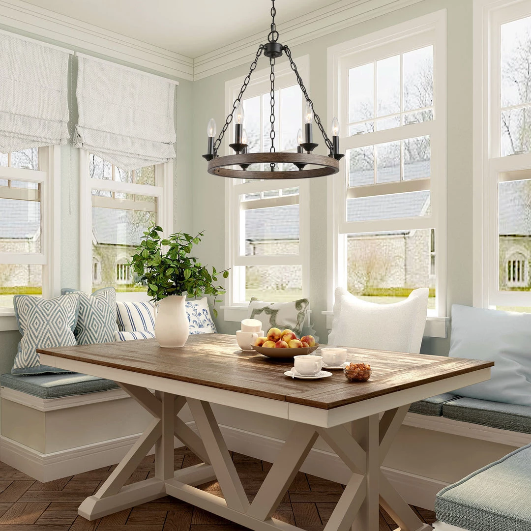 With creative design and apparent chicness, this Modern Wheel Chandelier is the perfect combination of both rustic and industrial style. The 6 torch glasses can deliver full brightness and elegance into your modern, contemporary or industrial living room, kitchen island or above your dining table.