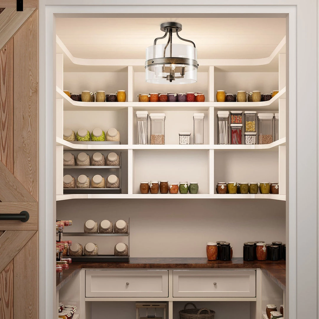 The clean-shaped ceiling light combines the sleekness of silhouette, the neutrality of colors and the boldness of steel. With its simplicity and versatility, Glass Drum Light by LNC Home is the perfect element that can be incorporated in any style imaginable.