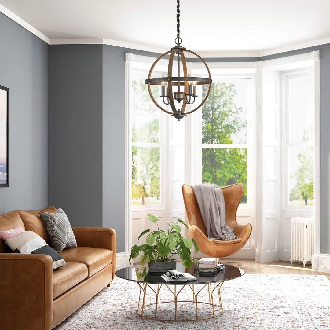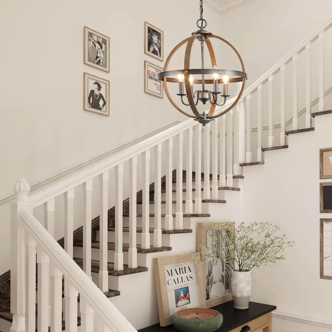 Featuring solid metal with faux wood and silver brushed finish and 4 graceful arms, this farmhouse chandelier is perfect for dining rooms, bedrooms, entryways, and any other places where you want farmhouse and modern charm.