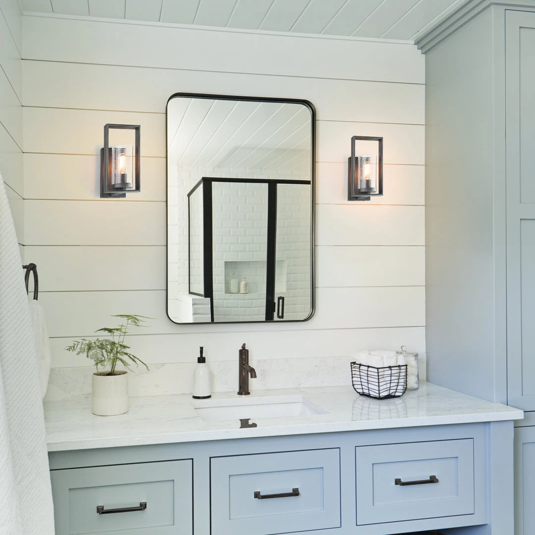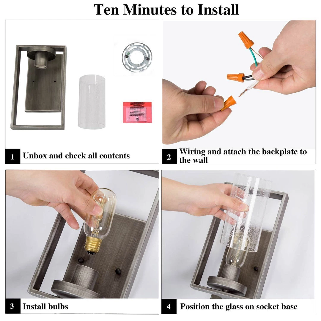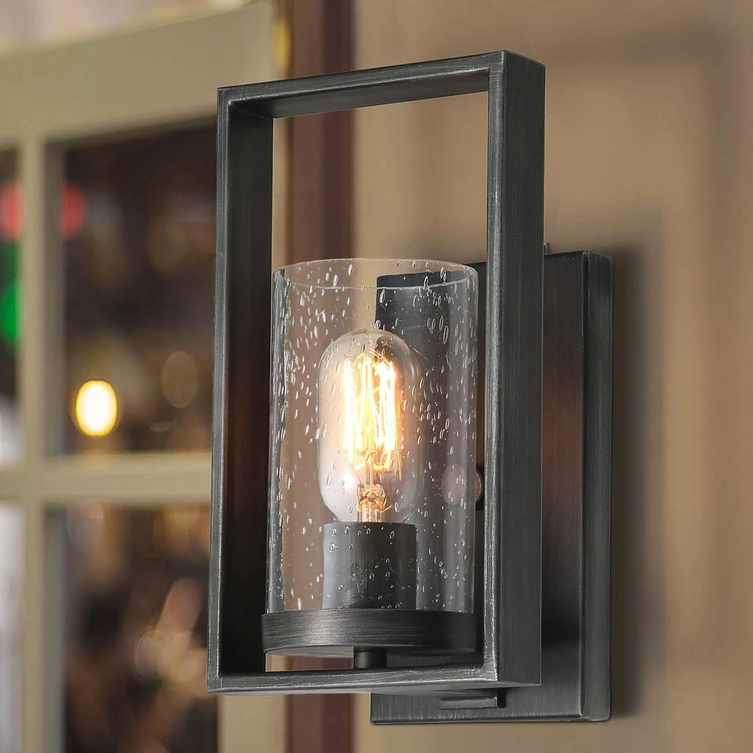Featuring a clean-lined rectangular frame, seeded glass shade, and silver plating with a jet black finish, this 1 light wall lamp is guaranteed to brighten up & refresh your space. Save your money for yourself! No need to hire an electrician for assembling and mounting this lighting. Just wiring, screw in the bulbs, then cover glass shade and watch your room as it shines gorgeously!