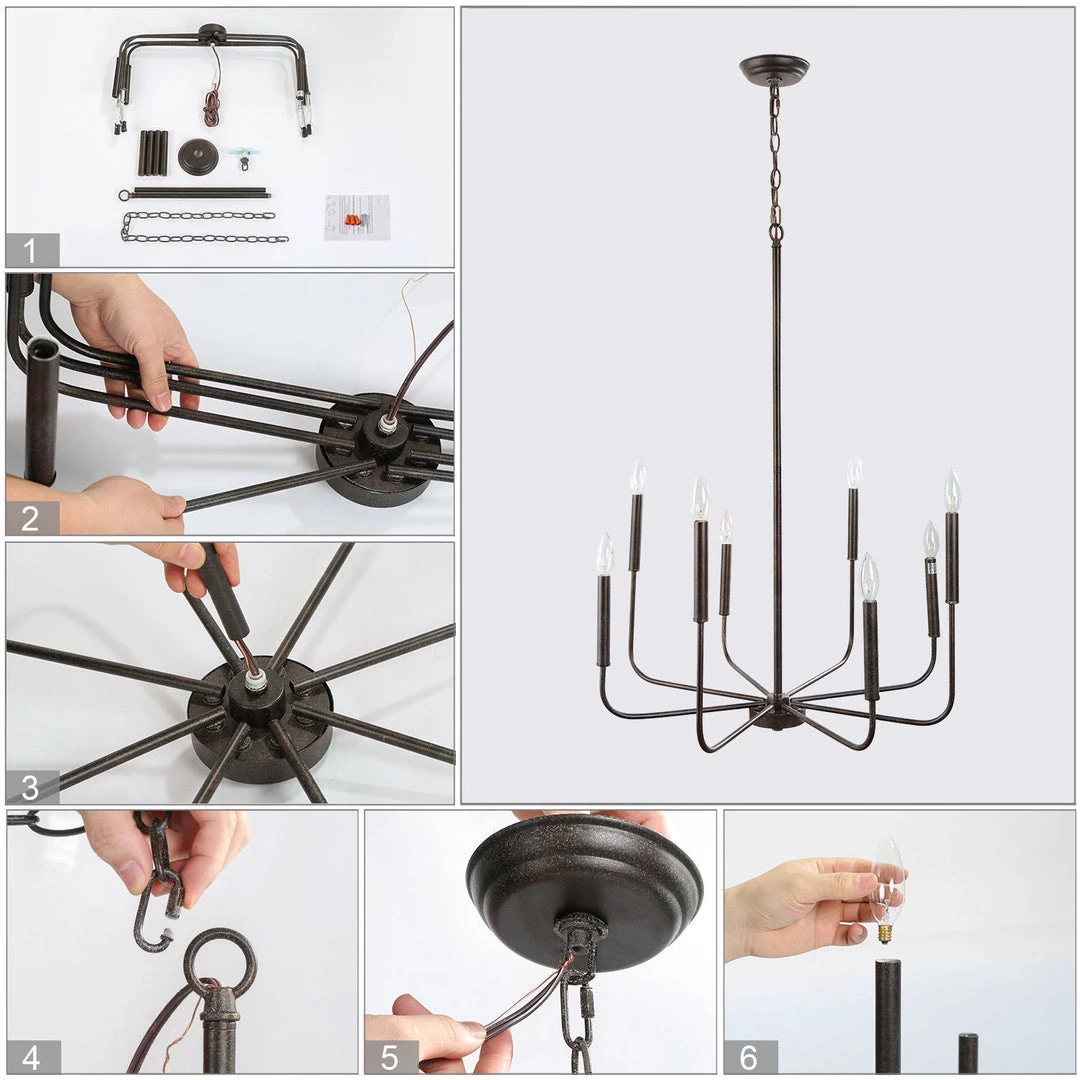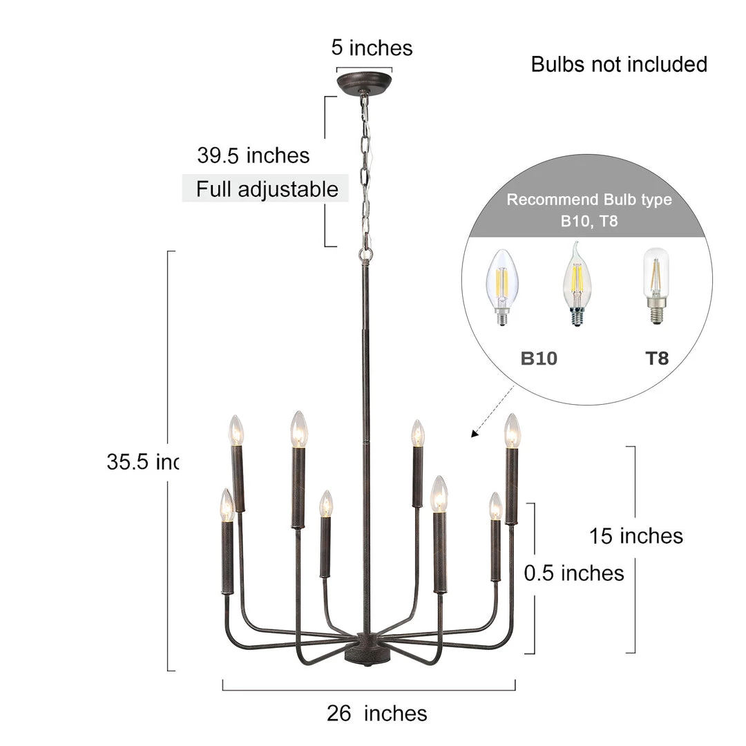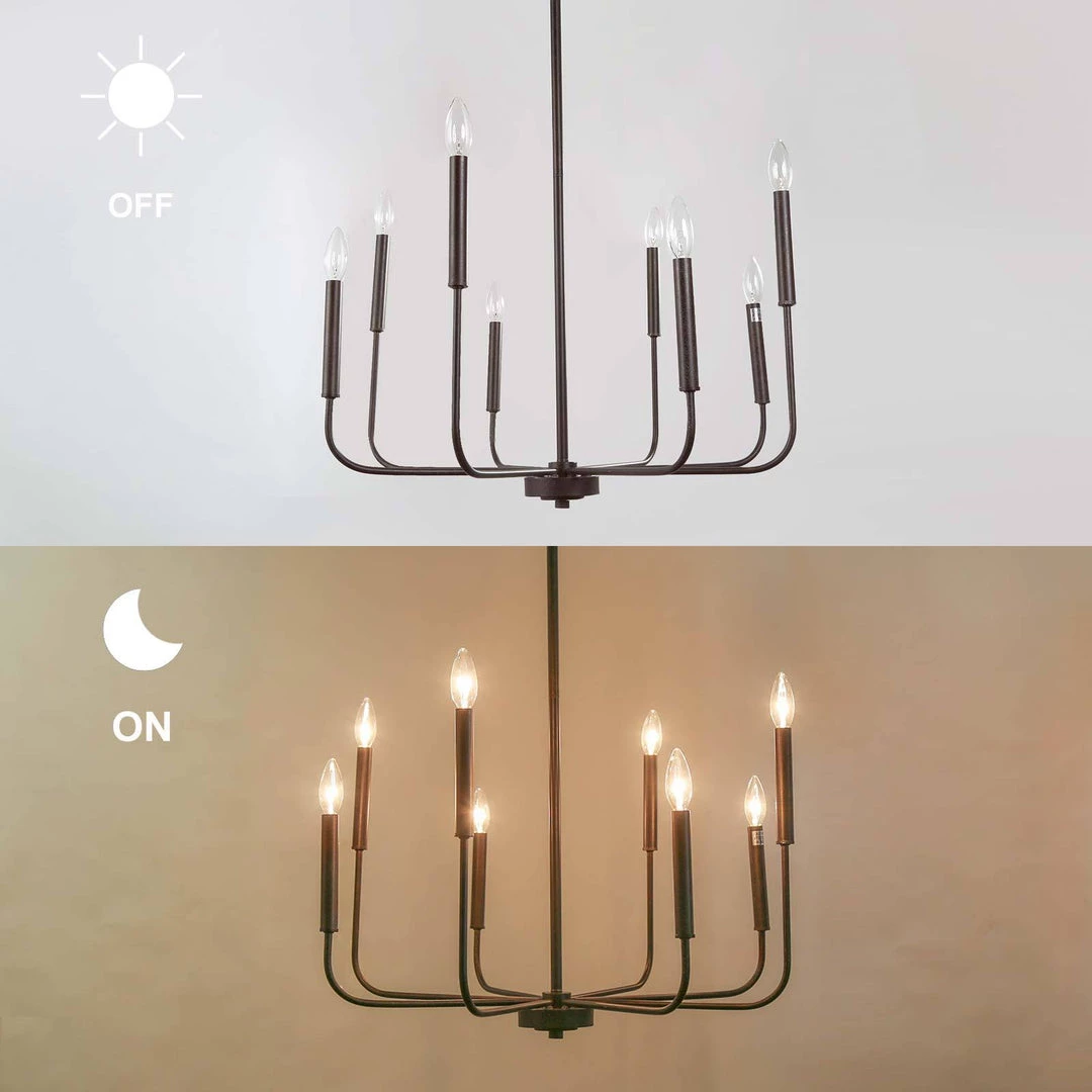 This modern 8-light chandelier stands for simplicity and minimalism. Crafted of sturdy metal in a dark bronze finish, this piece could perfectly complement modern, transitional, or industrial styles. It offers striking fluidity and a seamless modern feel. Add some glam into your living room, bedroom or kitchen with this statement chandelier now!