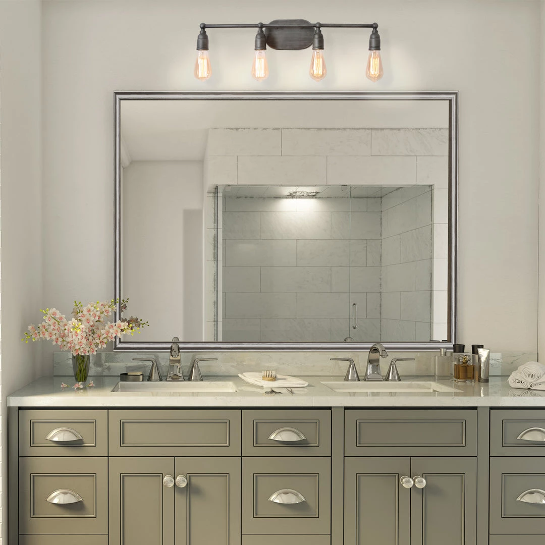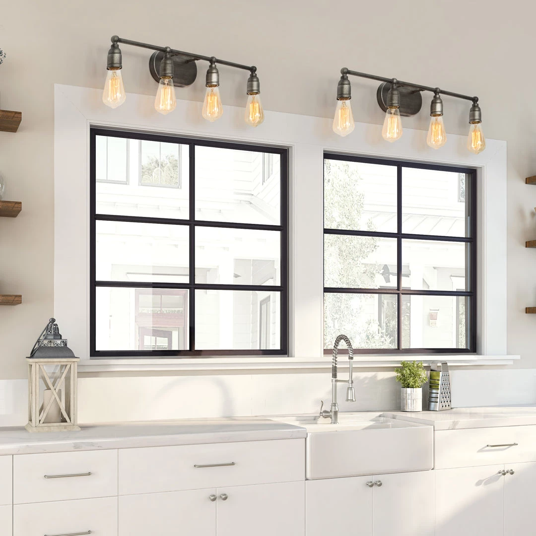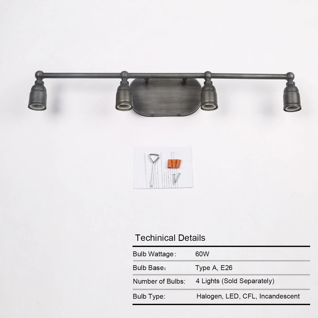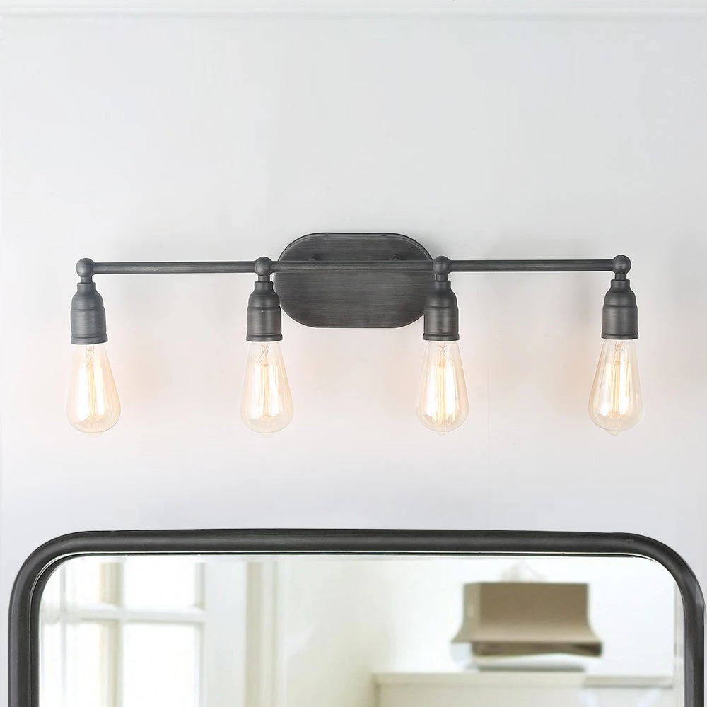 With antique silver brushed textures, streamlined lamp arm and water pipe lampshade, the vanity light has more illumination with 4-head, adding a touch of farmhouse ambient to your bath or powder room.