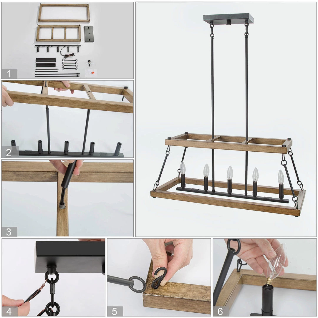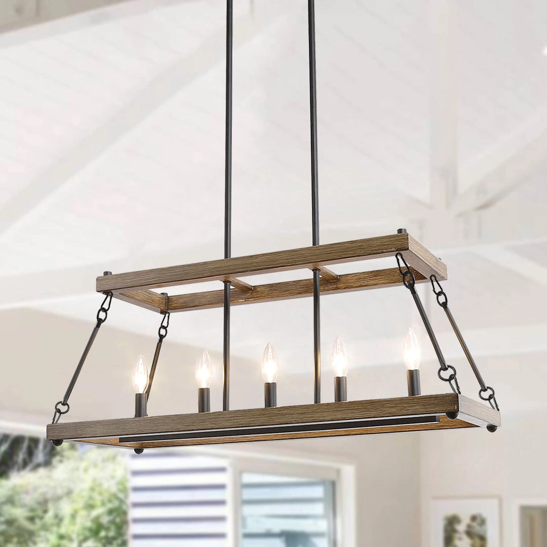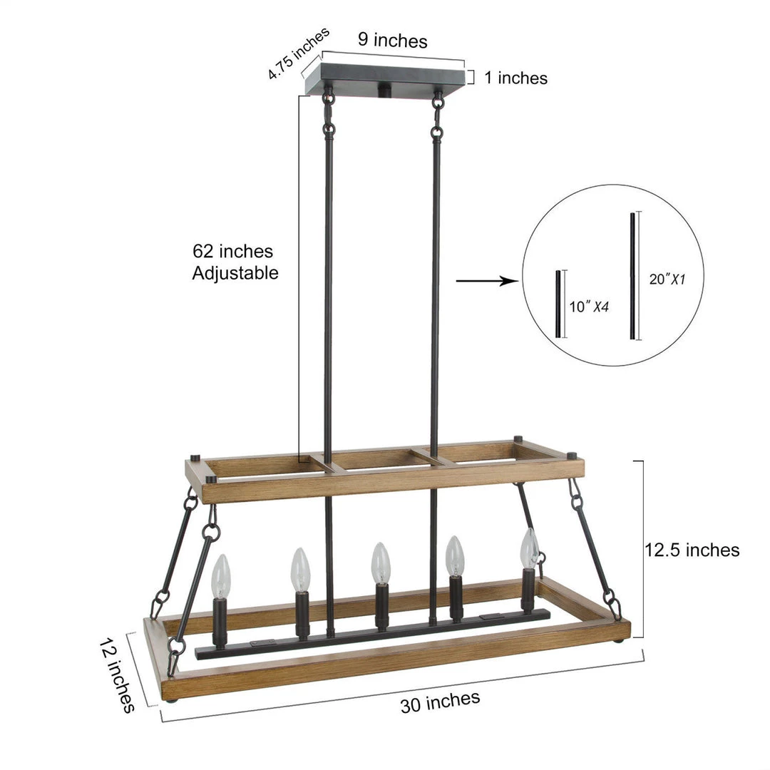 Featuring 4 rotatable metal bands, and faux-wood & black painted finish, this 5-light indoor chandelier comes with every element you need to create the desired style environment.