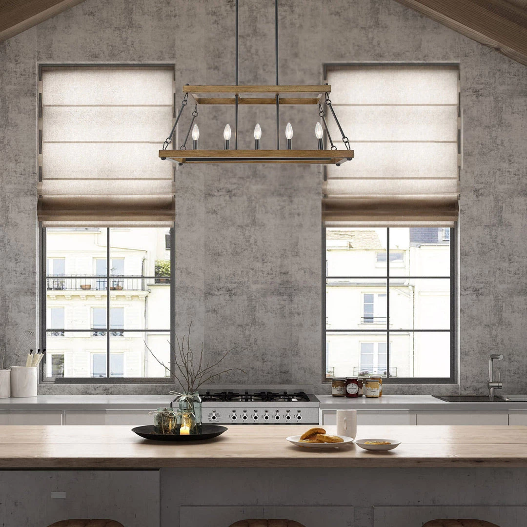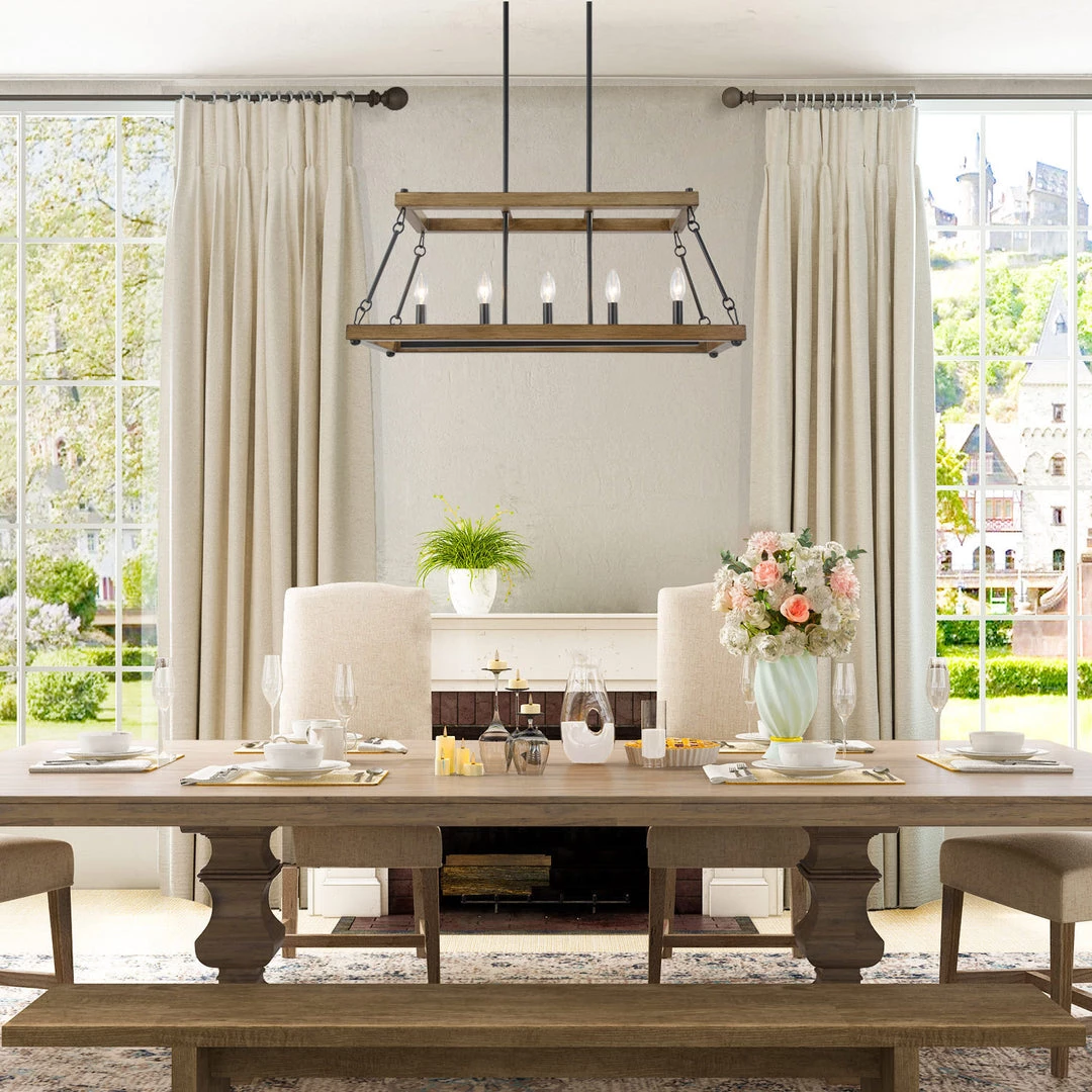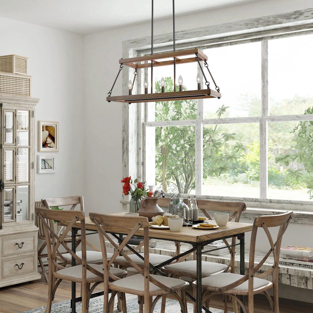 Featuring 4 rotatable metal bands, and faux-wood & black painted finish, this 5-light indoor chandelier comes with every element you need to create the desired style environment.