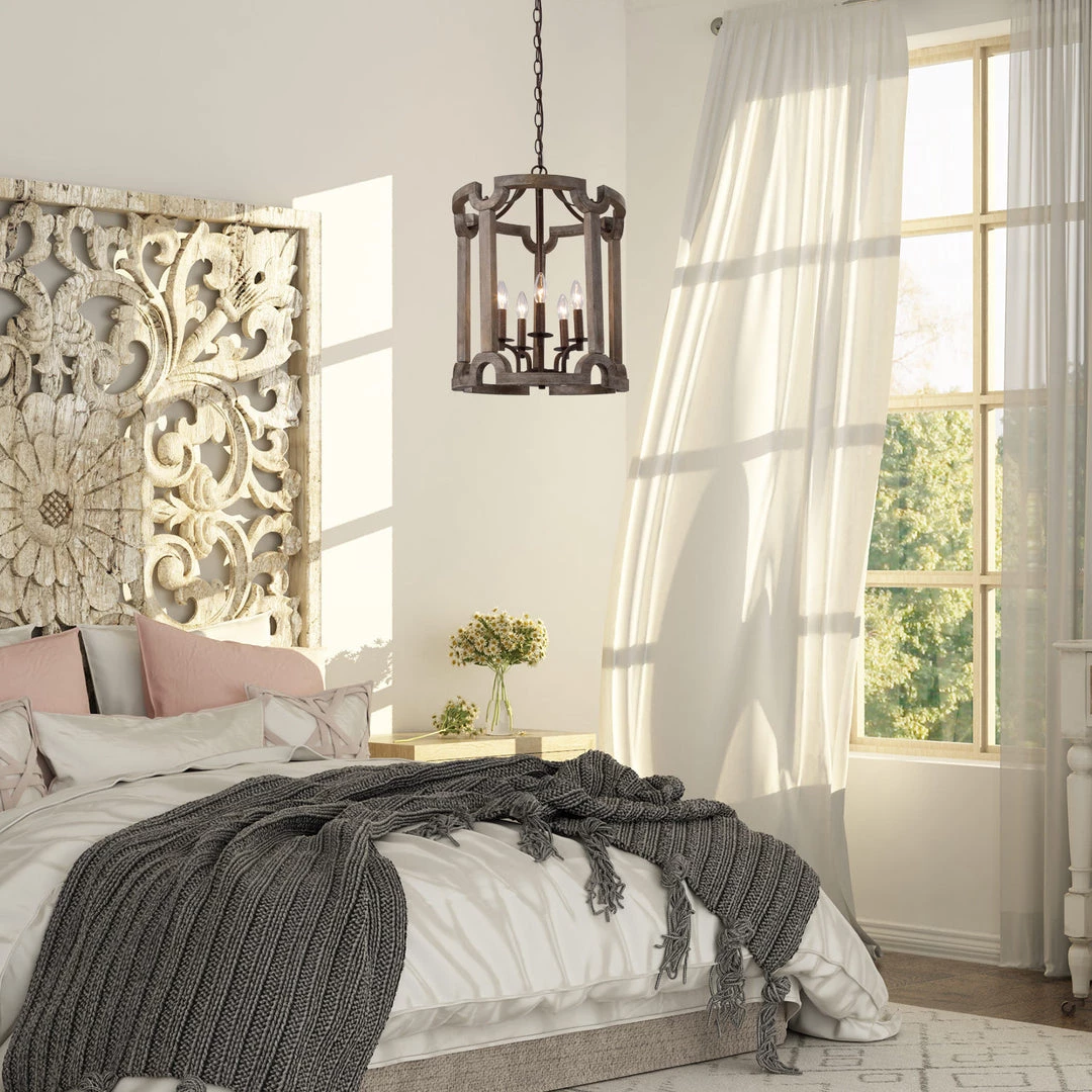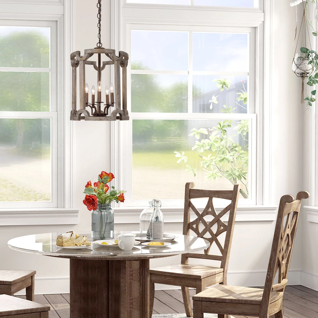 As a European cage design that has the greatest versatility to be incorporated in either eclectic or farmhouse decors, this 5-light wooden chandelier adds a subdued and vintage vibe to your space. Hung in multiples or on its own, this lantern-style chandelier is strong in its earthiness and rustic charm.