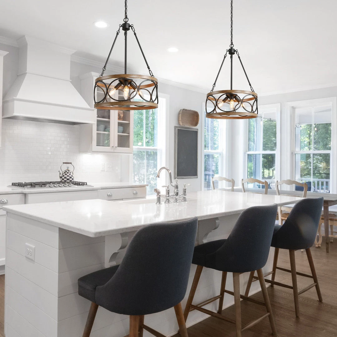 Two-tone black and wood grain finish gives this farmhouse chandelier a modern yet farmhouse appeal. Its adaptable design offers elegance and contemporary touches to any space like dining room, bedroom, living room, and entryway.