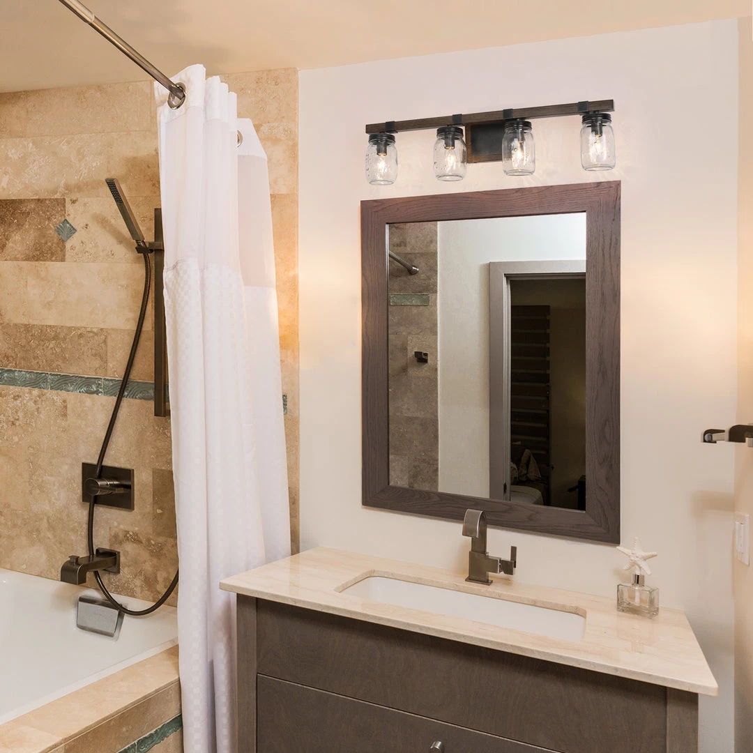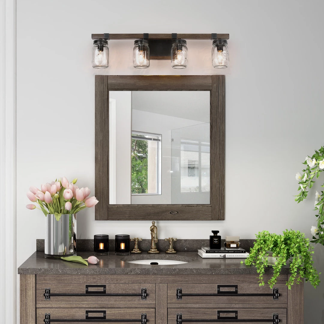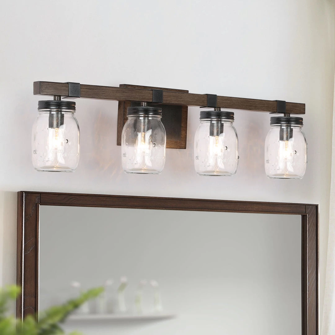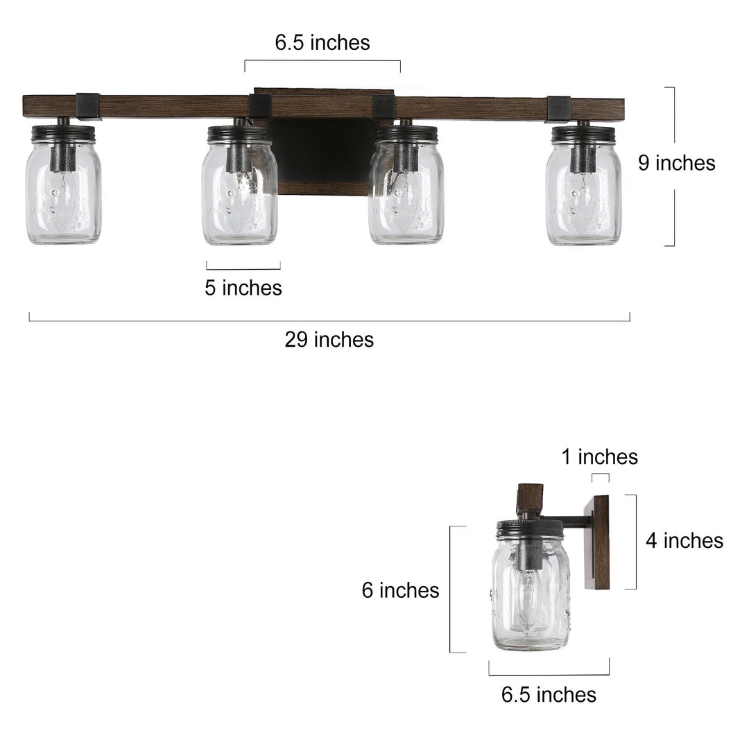 As the exclusive star in LNC Home, the Mason jar has the timeless charm that proves the true beauty comes from our simplest life. The unique and down-to-earth design achieves the perfect combination of versatility and great earthiness. This 3 light Farmhouse Vanity Light Fixture works best over mirrors in the bedroom, bathroom, foyer, and more.
