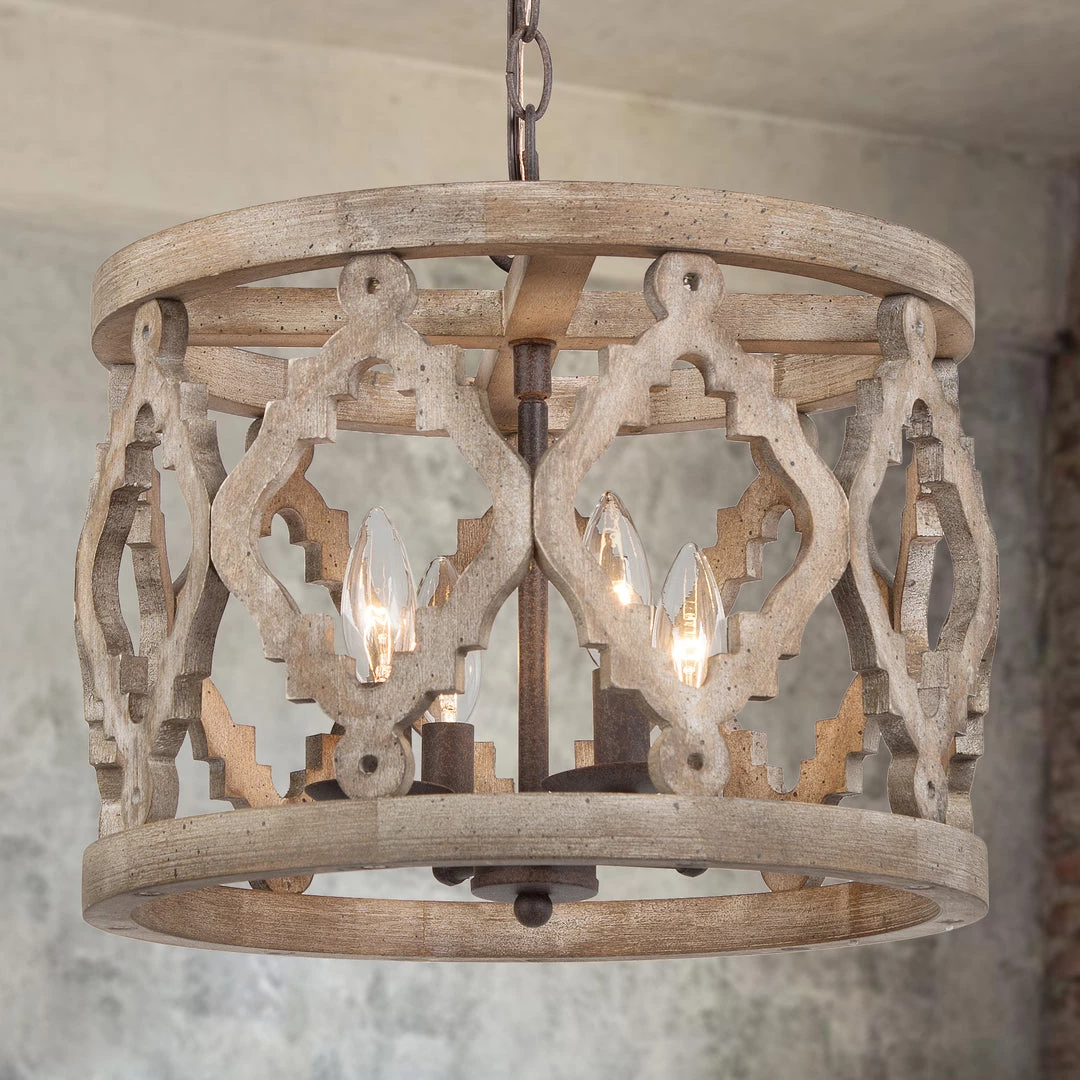 This Moroccan Rustic Chandelier has the perfect rustic elegance to its aura. With a wood frame hand-crafted with intricate Middle Eastern patterns, this fixture is perfect for fusing the exotic charm to your kitchen bar, living room, or bedroom.