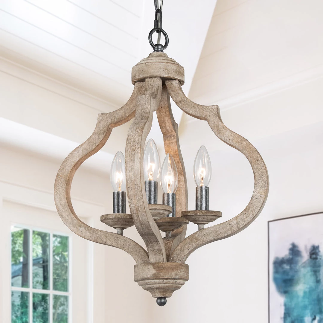 Shaped like a flower bud, this wooden light fixture exudes strong farmhouse charm and adds a layer of freshness and warmth to any space. Meticulously hand-carved out of natural wood, the frame is detailed to perfection in each corner. Hang in multiples or on its own, this light fixture adds elegance and chicness to a room beyond measure.