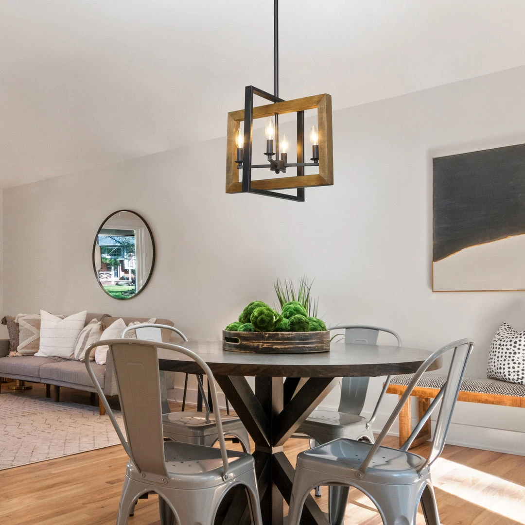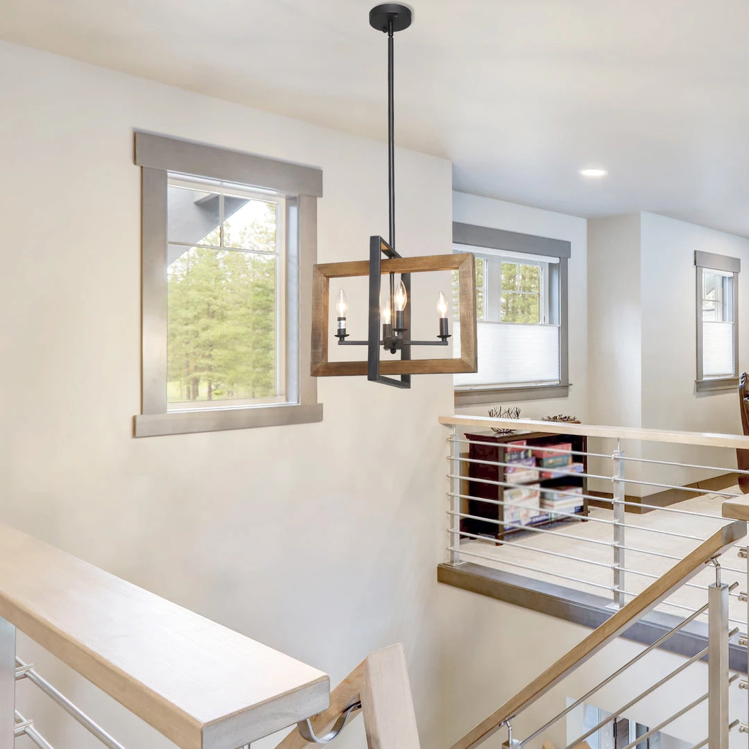 This simple but refined piece is destined to be a classic. With two rectangles of two different materials crossing together, this hanging light exudes an industrial but elegant vibe that accents the temporary, welcoming, and earthy charm of the space.