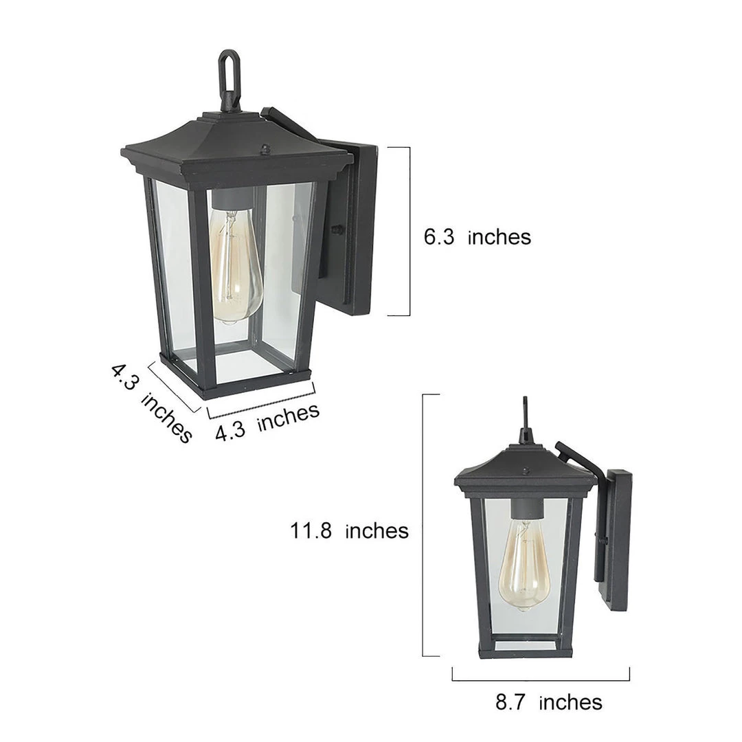 Farmhouse lantern style: the design of this outdoor wall sconce incorporates nautical and modern elements. The rectangular box-shaped lampshade is simple and succinct, while the design of the candlestick lamp holder adds a natural charm. The transparent glass design protects the light body while maximizing the lighting effect. Weather-resistant: made of sturdy and relatively lightweight aluminum and glass, this outdoor wall lantern has a good seal and is well tolerated in a variety of outdoor weather conditions, characteristic of waterproof and shockproof, giving you a higher price/performance ratio.