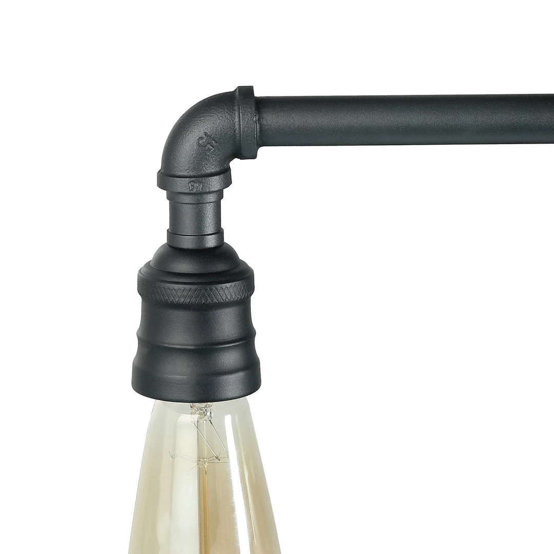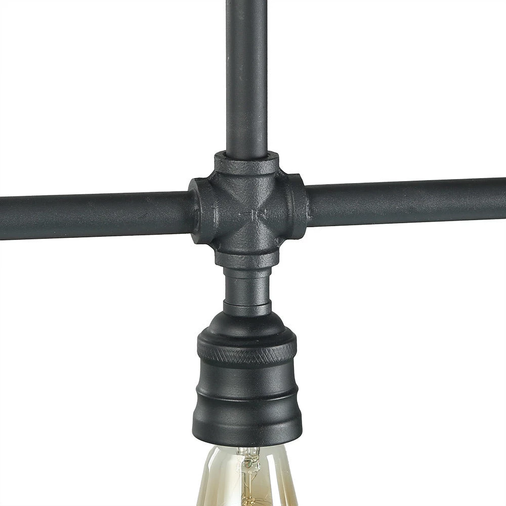 Simple pipe-shaped chandelier, specially designed to illuminate the heart of your kitchen, dining room or industrial styled places. Crafted of metal in a handsome oil rubbed black finish, this design features 4 water-drop-inspired glass shades dropping from a linear straight pipe-shaped base.
