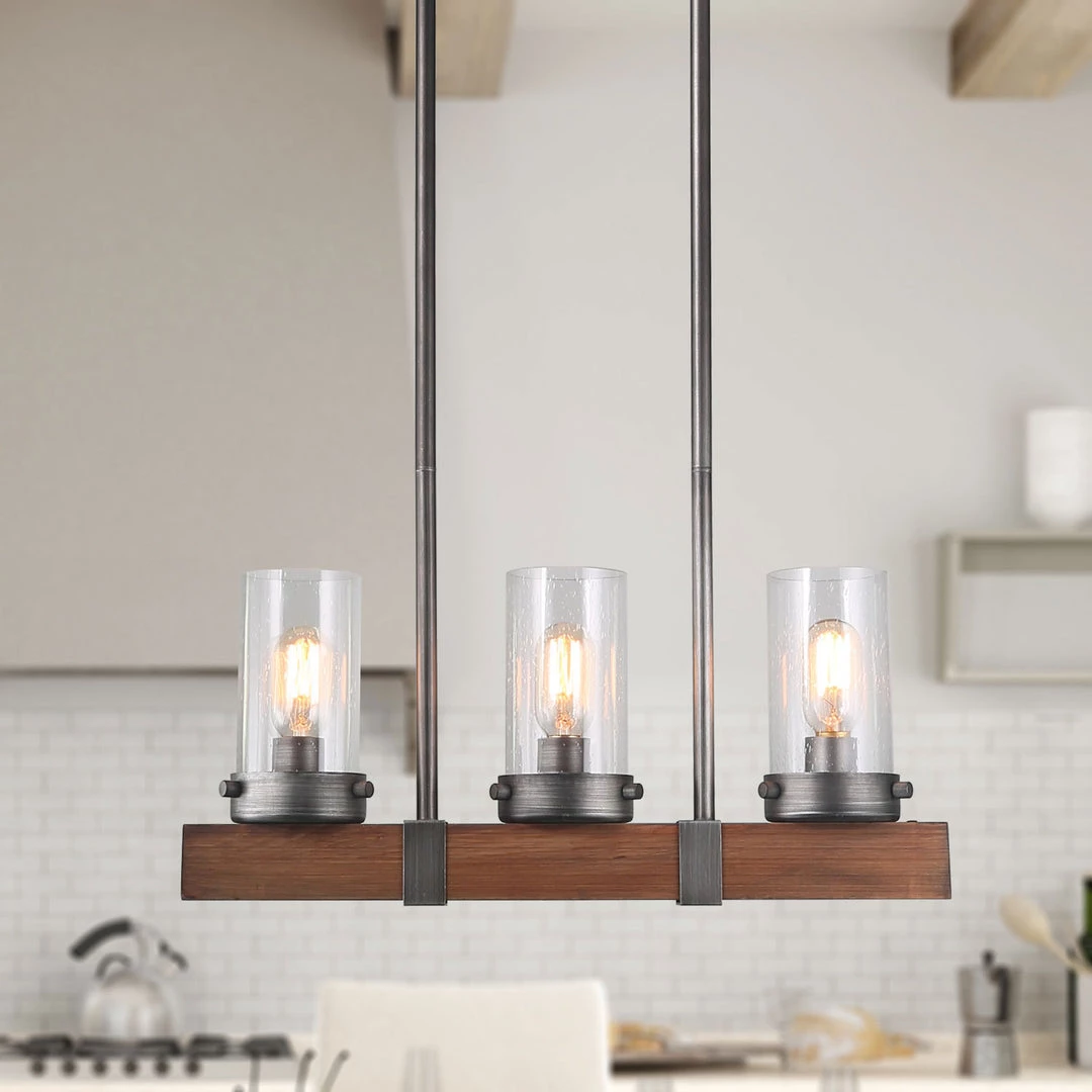 It updates a plain kitchen into a rustic farmhouse-inspired space with this 3-light linear chandelier. An alluring addition that brings on-trend style and illumination to your home. Enhance the appearance of your kitchen island by installing this Kitchen Island Pendant.
