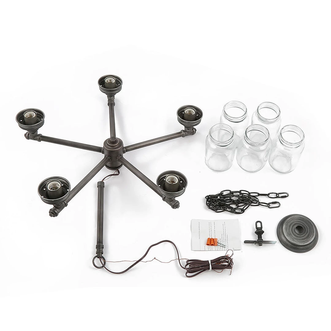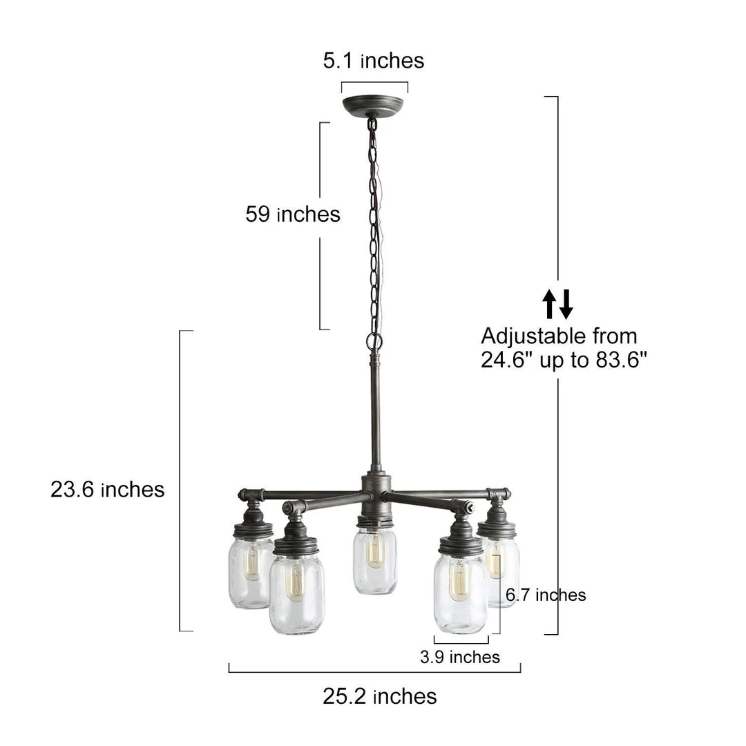 These handcrafted 5-Light pendants feature 5 clear, quart-size, mason jars with a look of days gone by for exceptional illumination of your space, which adds a romantic atmosphere to your home.