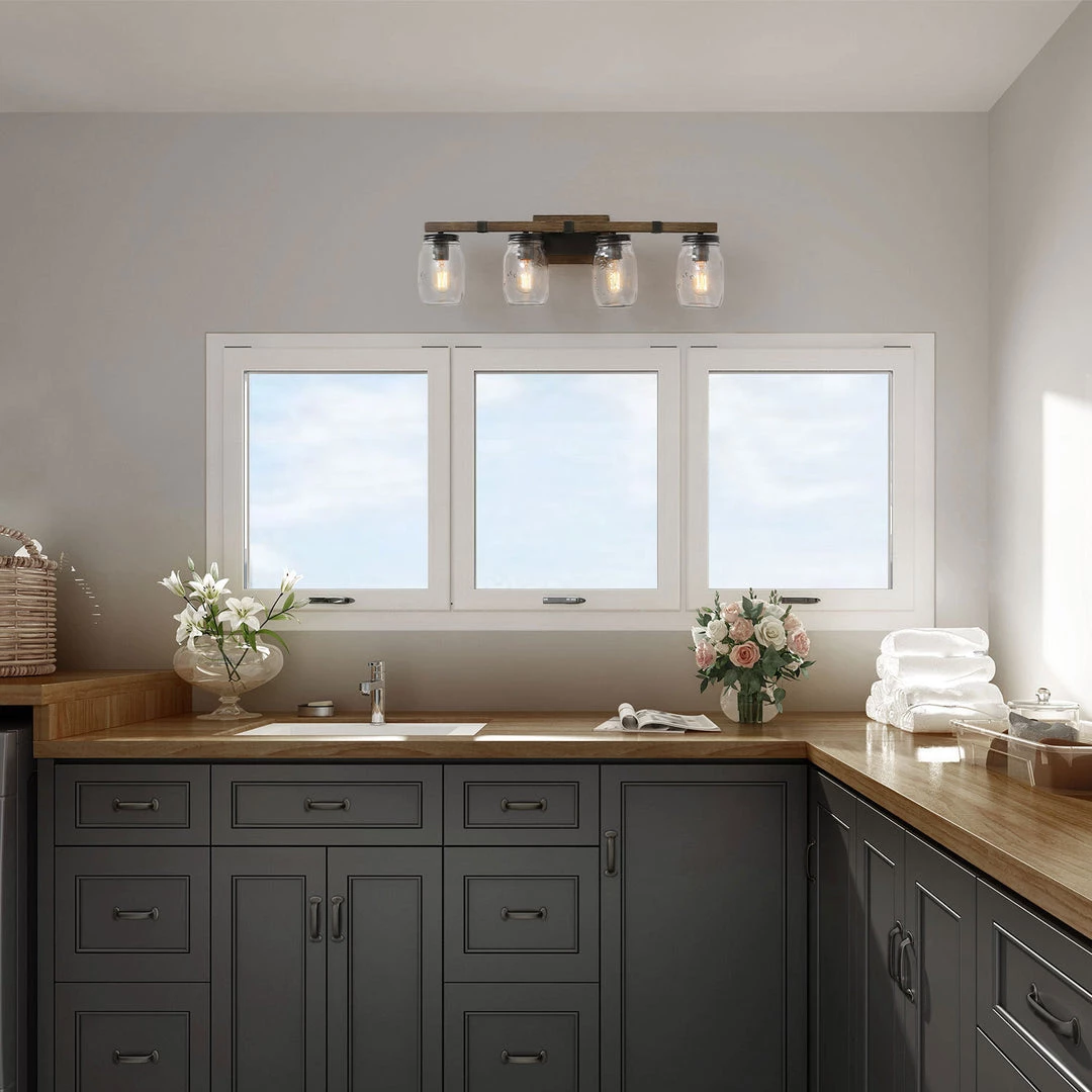 - Finish: Dark Wood Grain + Rustic Iron