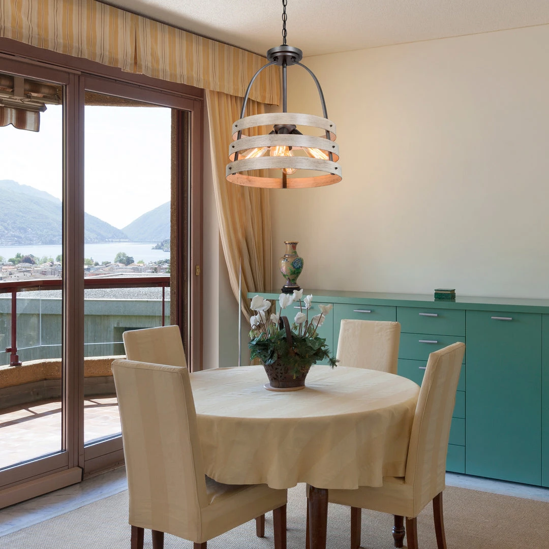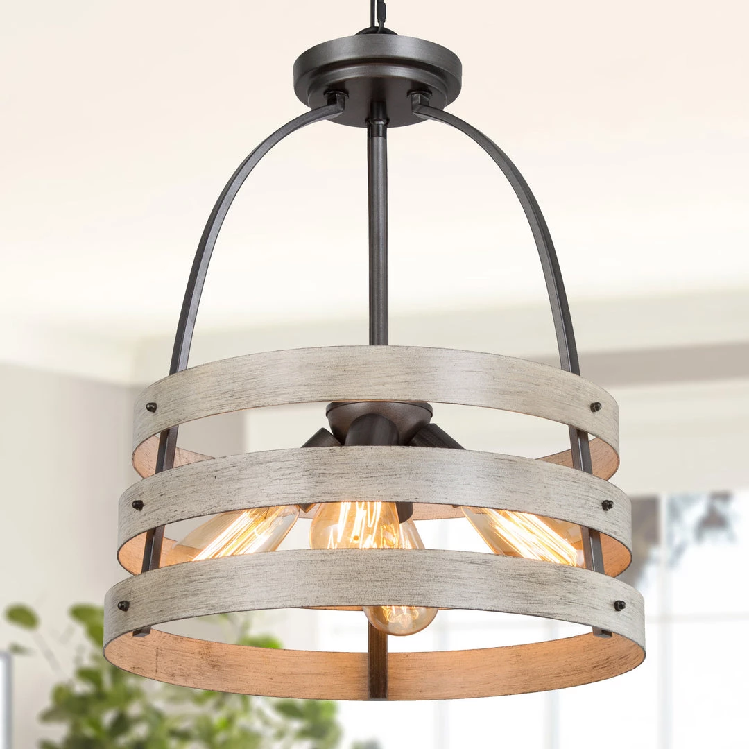 Inspired by antiques and vintage appeal, this lantern-style farmhouse pendant will fuse your spaces with instant rustic charm. Small in size, this fixture is best suited for narrow spaces or to be hung in multiples over a kitchen island or lined up in your foyer. The rustic veneer of the faux wood panels is partnered with the elegantly curved frame for a great combination of cuteness and farmhouse charm.