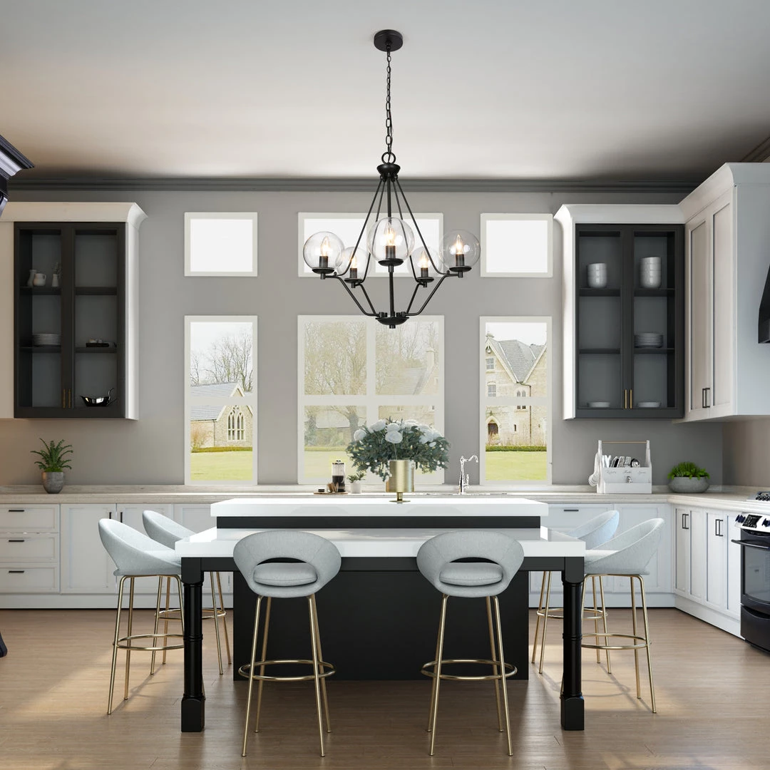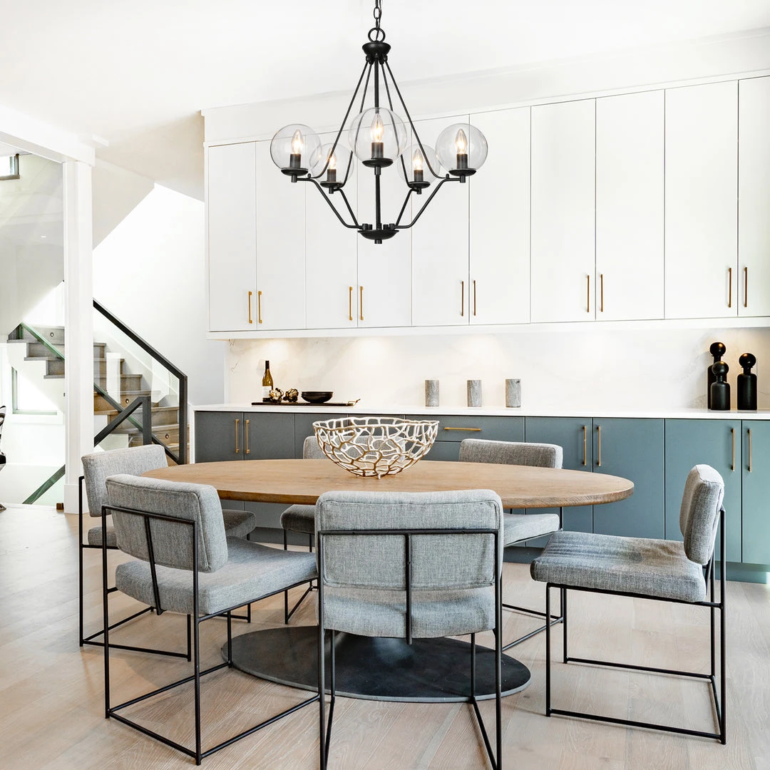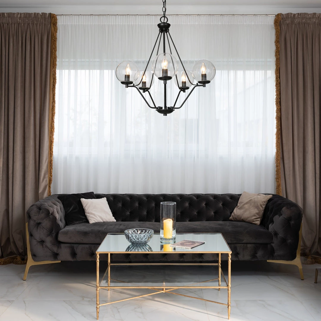 This black chandelier has an edgy modern design that will not go unnoticed. With the beautiful combination of materials, colors, and shapes, this chandelier is a minimalist design that will be a dashing addition in your living room or over your kitchen table.
