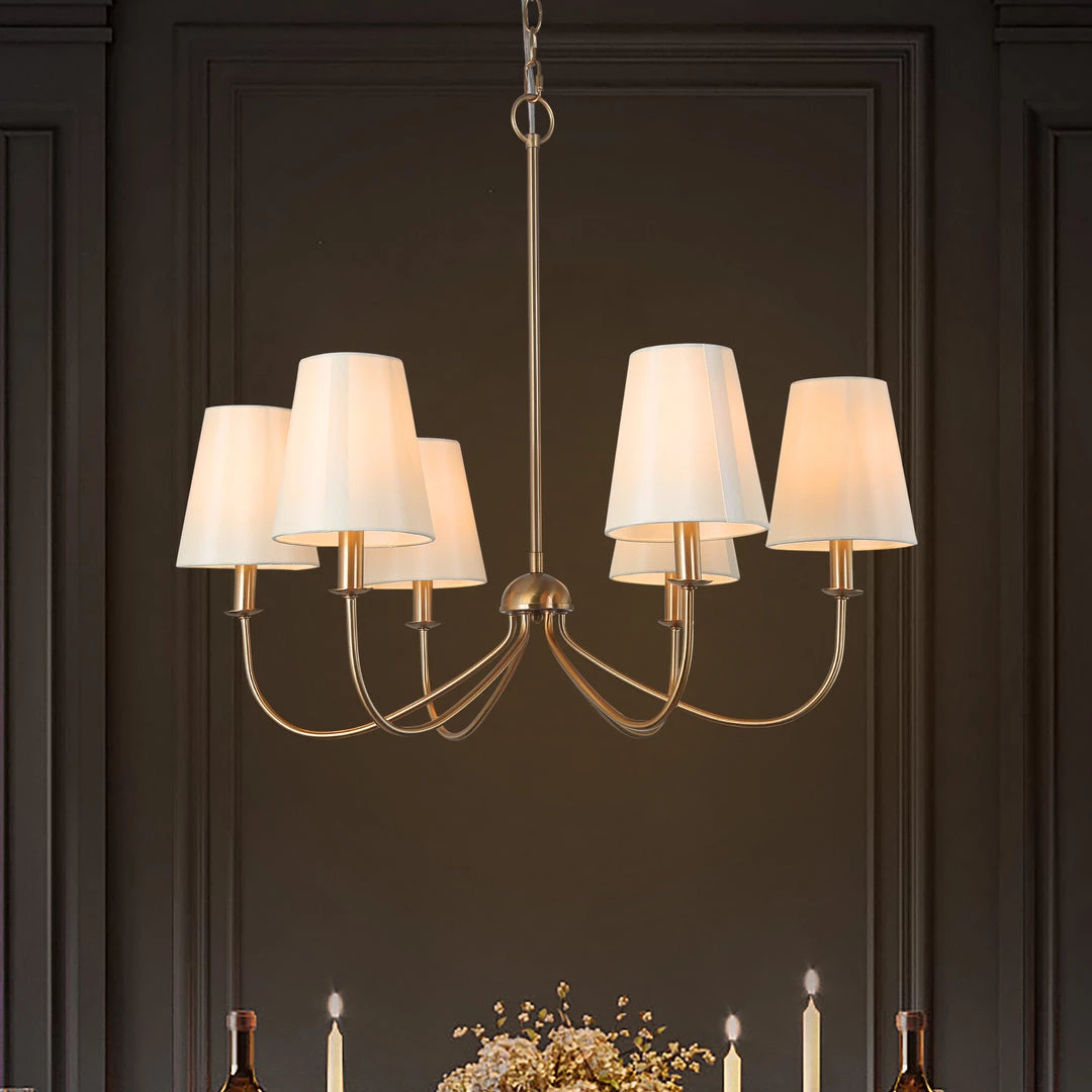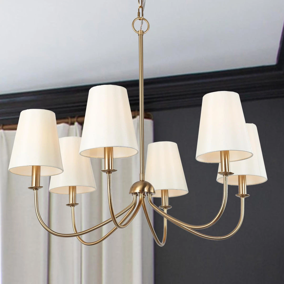 With an elegant shape and fun-loving style, this Rose Gold Modern Chandelier will be a welcomed addition to a variety of spaces in your contemporary home. With the harmonious combination of rose gold arms and cream shades, this truly gorgeous piece is suited for contemporary or eclectic spaces in need of a trendy piece or a free-spirited living area.