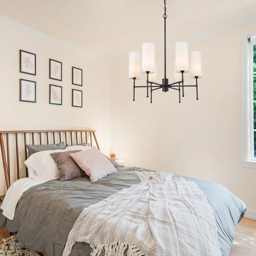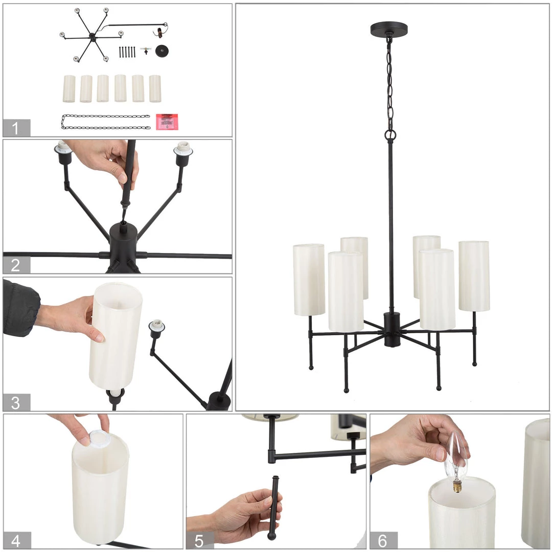 With a modern twist on a classic design, this candle chandelier will breathe new life into your trendy rooms with calming hues and a playful design. The smooth lines and mixed materials of glass and metal form this truly elegant silhouette, while the color combination of milk and brush silver underscores the understated elegance of this fixture. Perfect to be incorporated in your living room, kitchen or foyer.