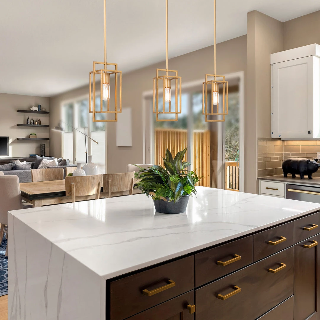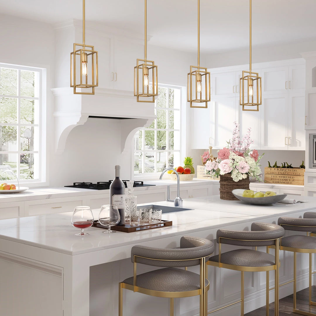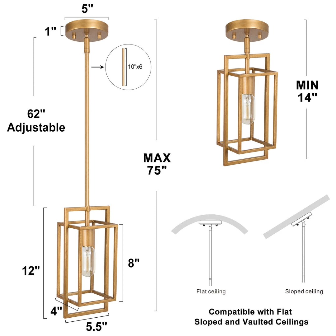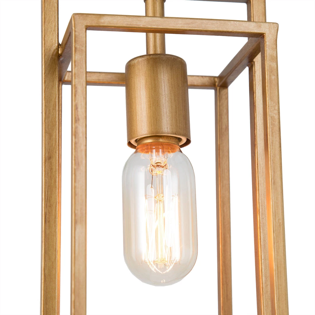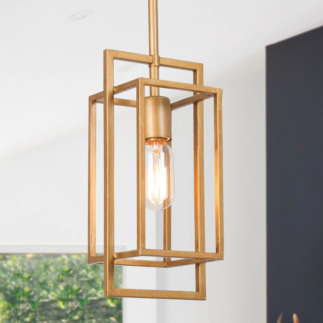 Sleek and contemporary, this pendant light incorporates rectangular shapes and mixed metals finished in aged gold. As a sophisticated eye-catching design, this light fixture can be meshed in your modern spaces with a striking and edgy note.
