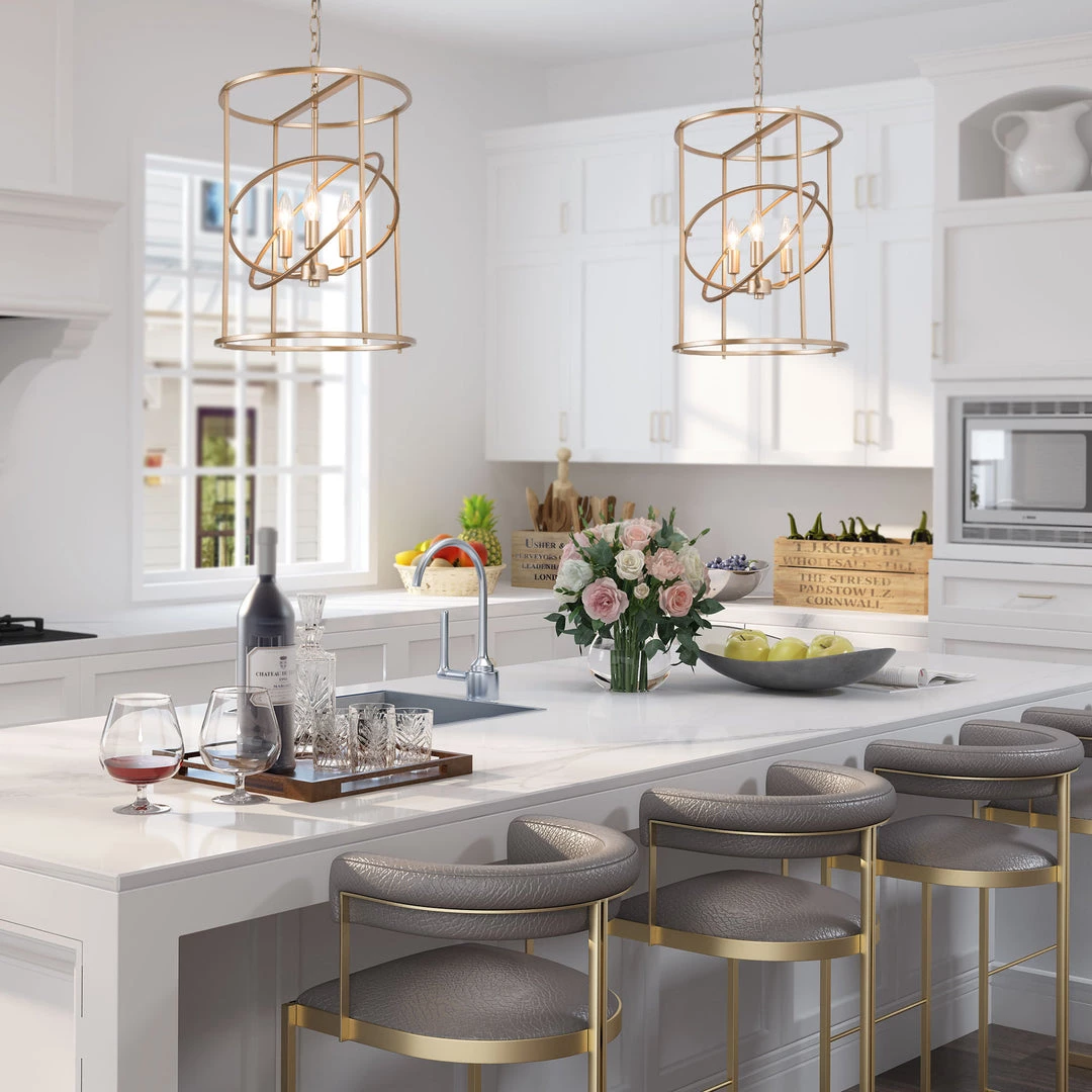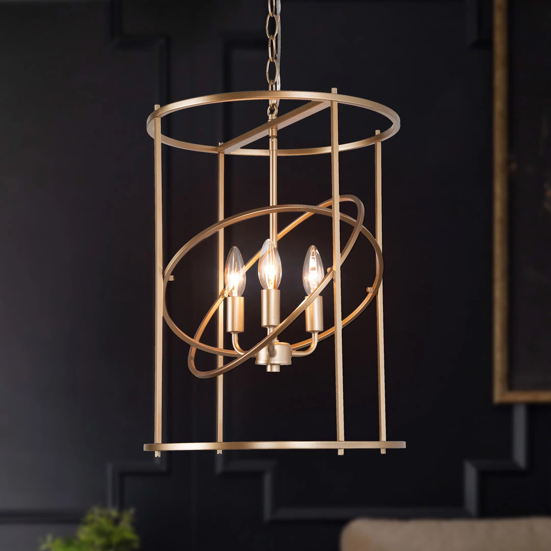 Glowing with a rich finish and an abundance of light, this modern cage chandelier is a playful and eye-catching addition to any space. The color palette of aged gold fills your modern glam spaces with luxurious style, while the simplistic and sleek frame underscores the edgy motif of the piece. Perfect to be repeated over a kitchen island or a foyer.