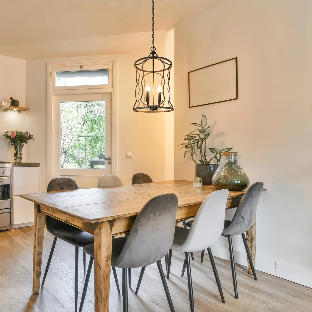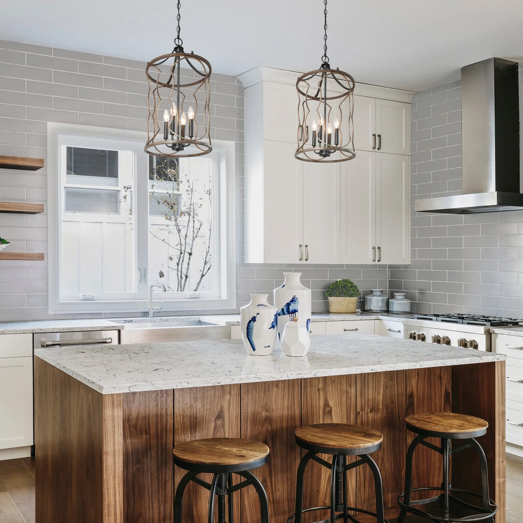 This cage chandelier has the perfect amount of modern vibes and a tinge of industrial aura. The elegantly-twisted metallic frame creates the simplistic and chic silhouette that adds a strong layer of personality to your living room, foyer, or kitchen. With an open design, this chandelier provides ample light to your spaces.