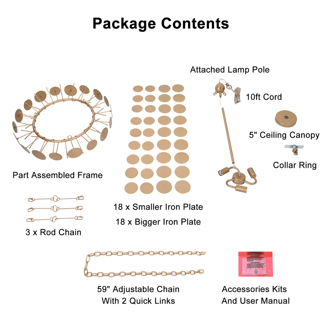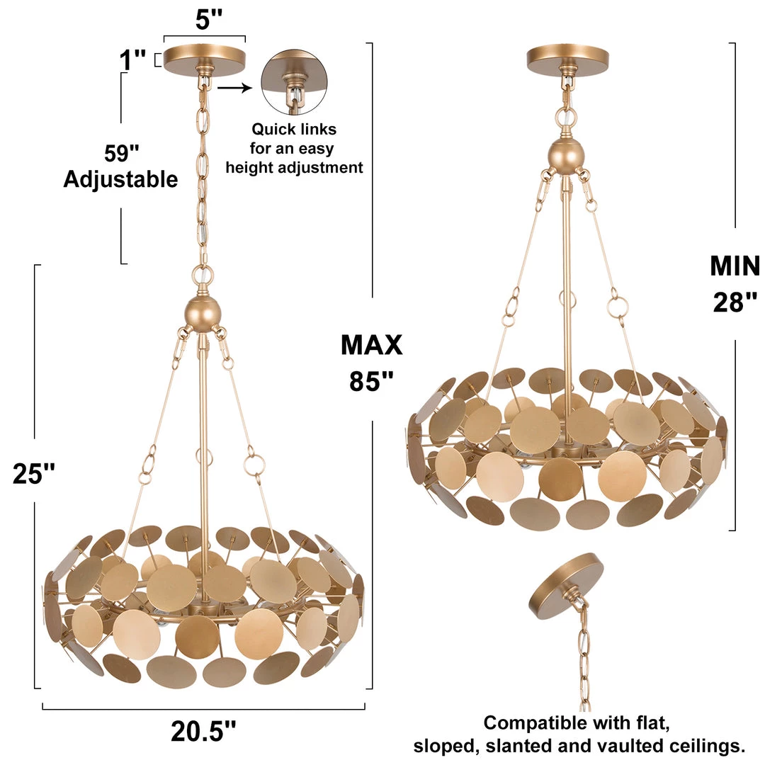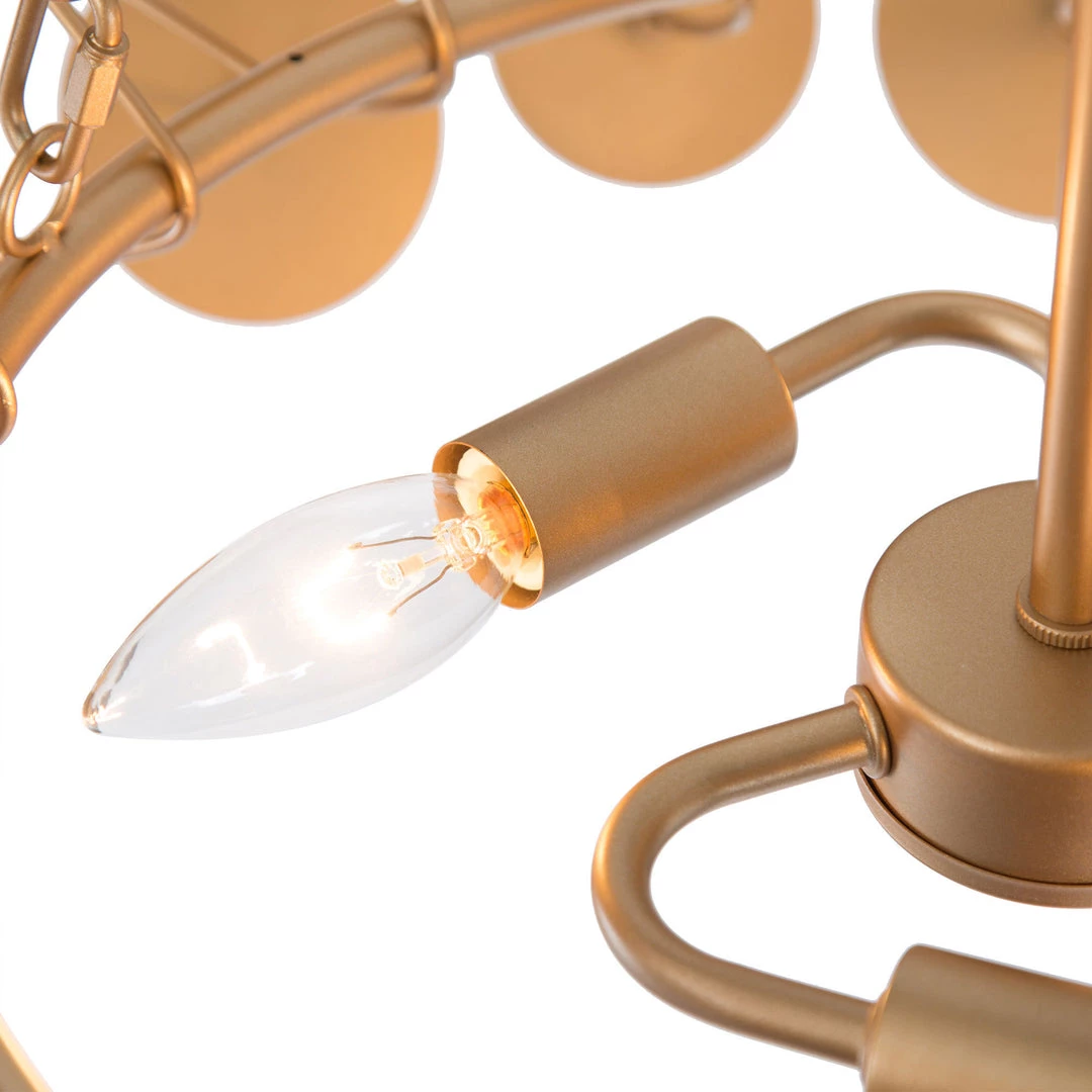 This sophisticated and modern chandelier showcases a geometric round leaf pattern in a golden finish. With an edge-cutting and contemporary look, this chandelier can mesh with your on-trend decors with an extra layer of sophistication and refinement.