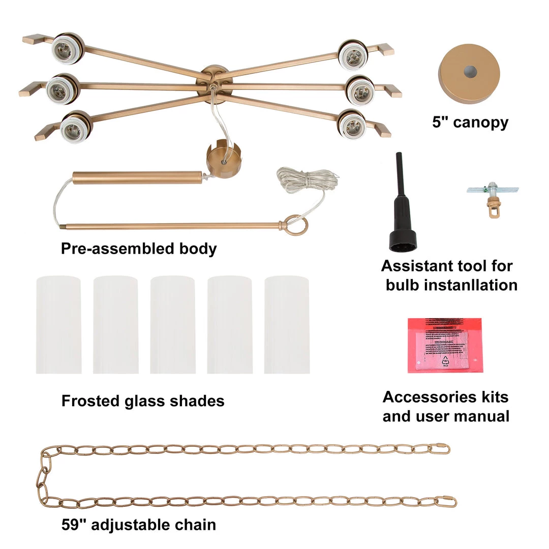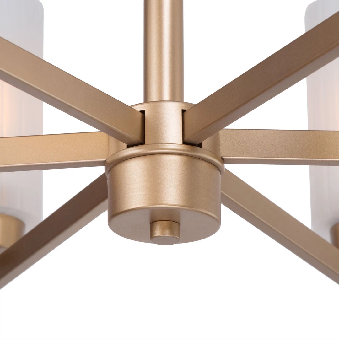 Chic to the bone, this vintage gold modern chandelier creates a modern classic look that matches with a range of fashionable decor. The combination of aged vintage gold veneer and cylinder glass shades creates this elegant and eye-catching design that casts style and ample light to your living room, bedroom, and kitchen.